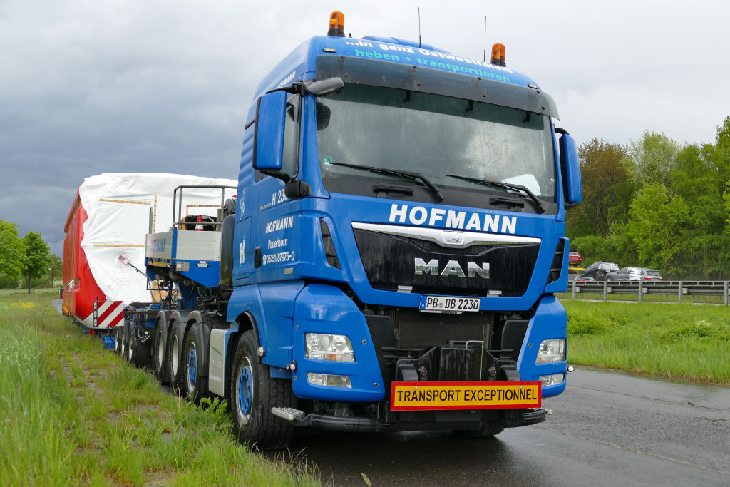 MAN 41.560 TGX XLX mit Goldhofer STZ-VP8 Tieflader und Nordex N 117 Gondel