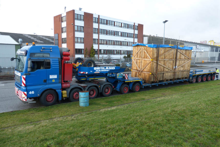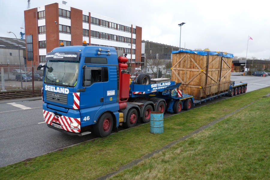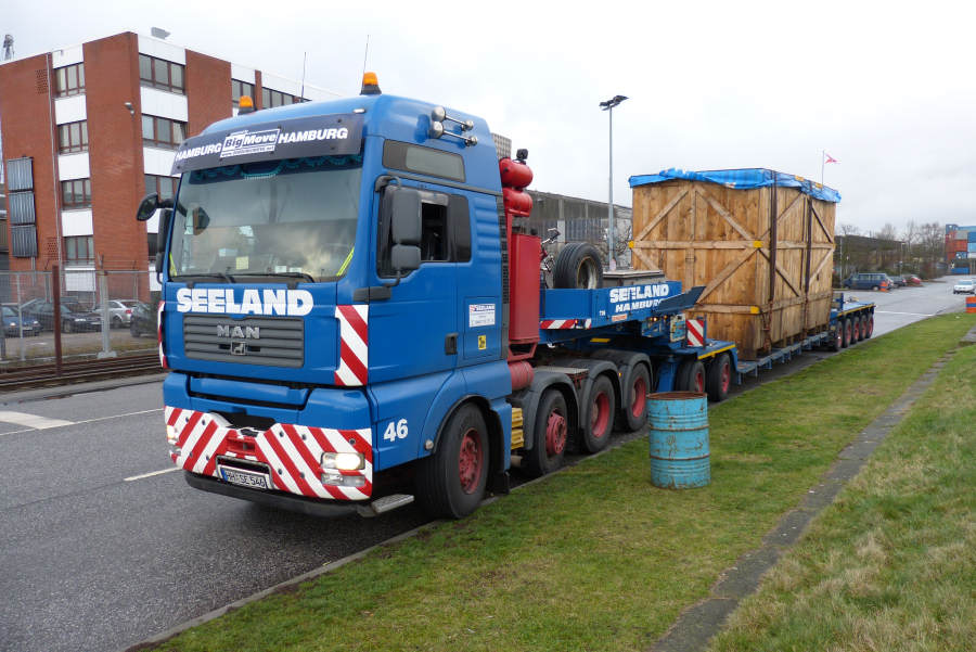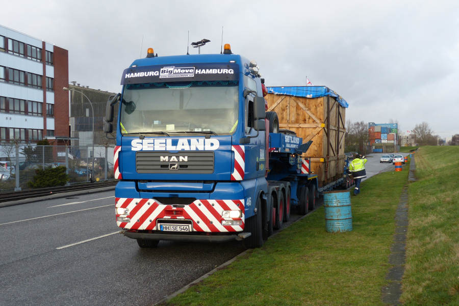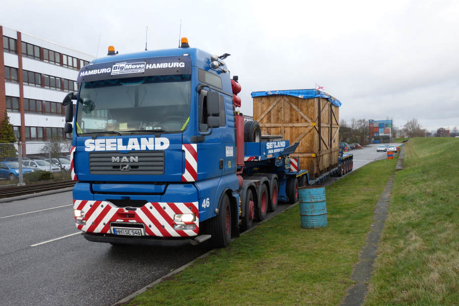 Anfang Januar 2013 stand dieser Transport abfahrbereit vor einem Umschlagbetrieb im Hamburger Hafen.