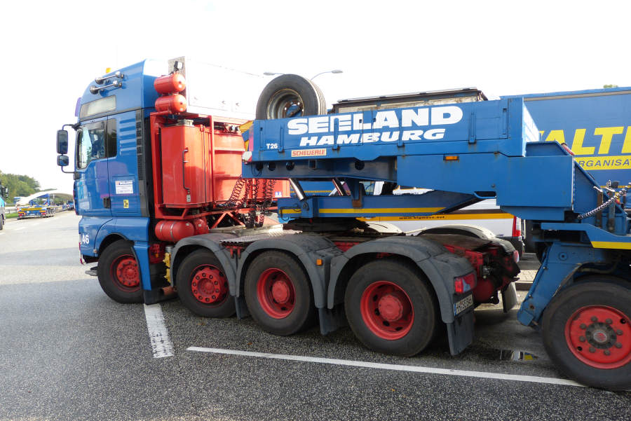 Im September 2013 stand derschon mehrfach gezeigte Schwerlasttransporter auf der Raststätte