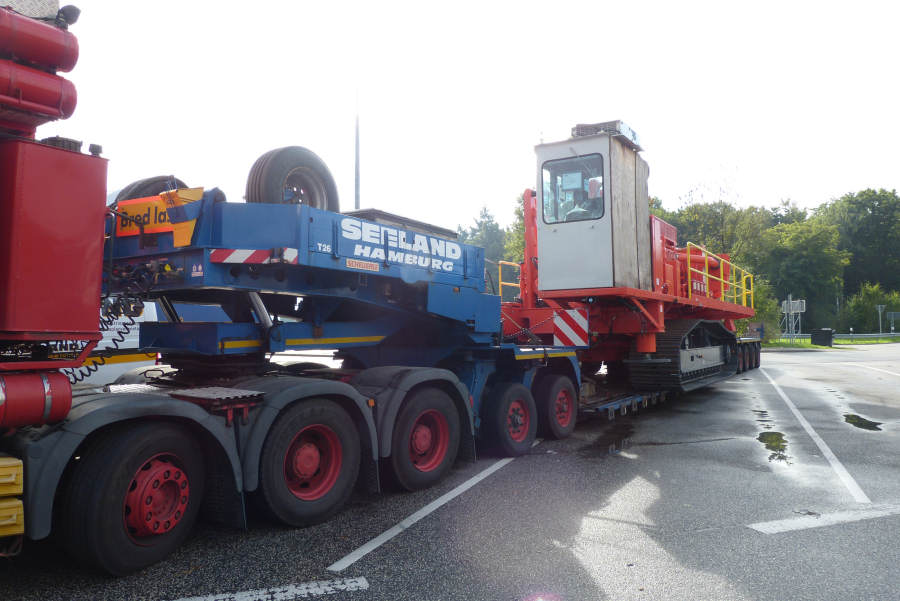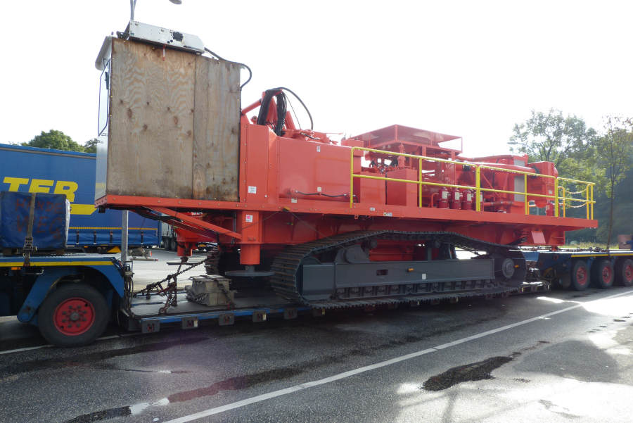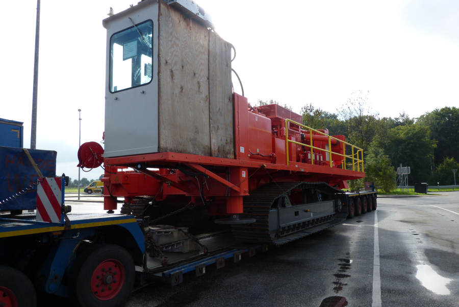 Verladen war ein Sandvik D55SP Sprenglochbohrgerät, für den Export. Die Maschine bestand nur aus dem Grundgerät,