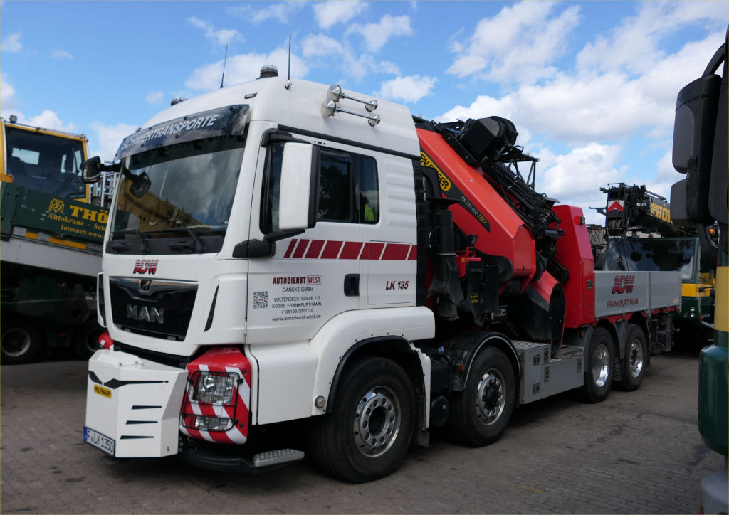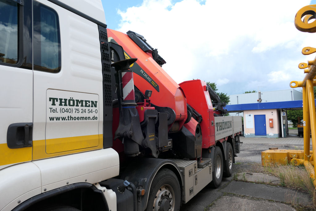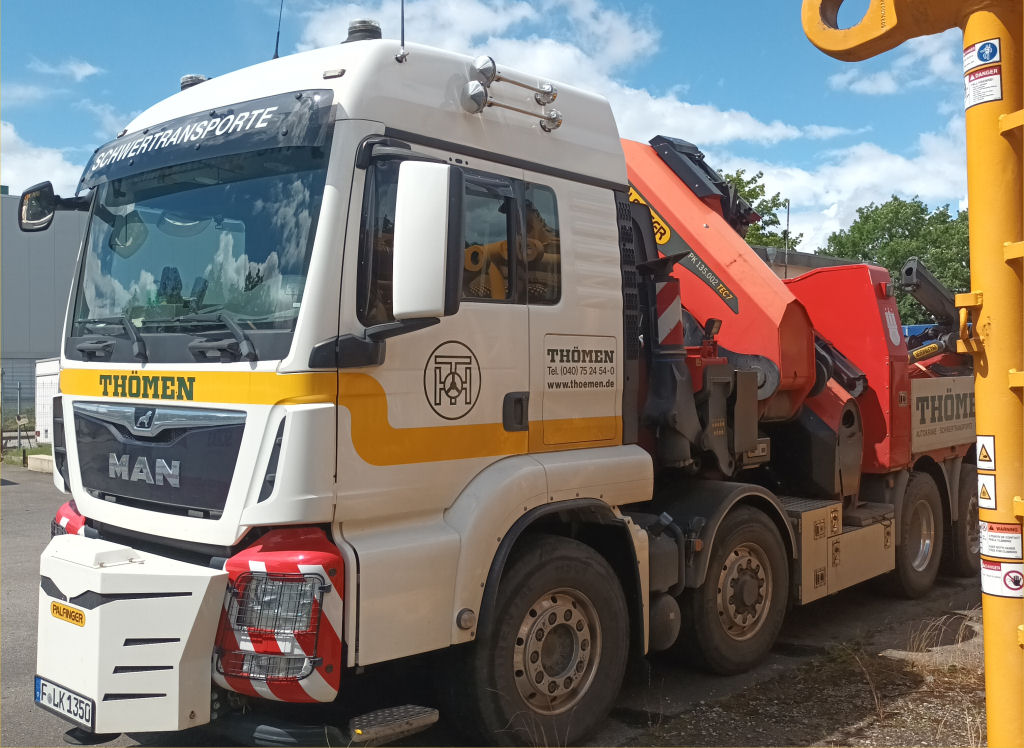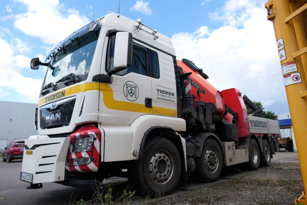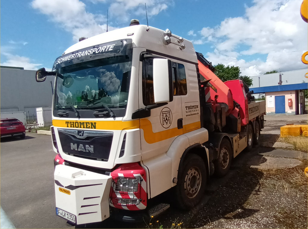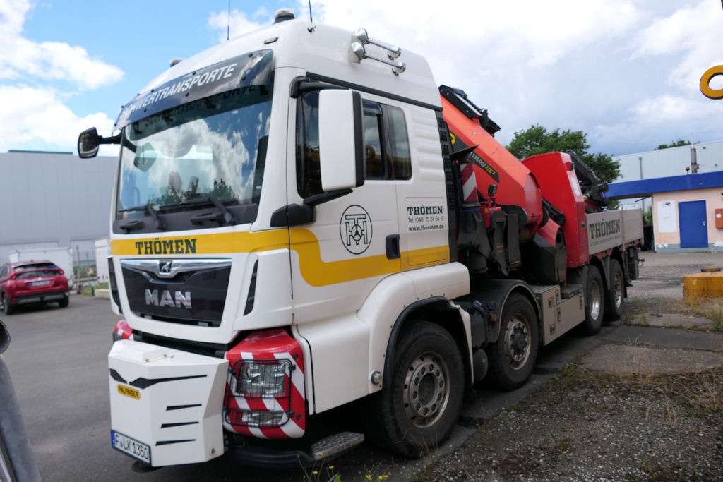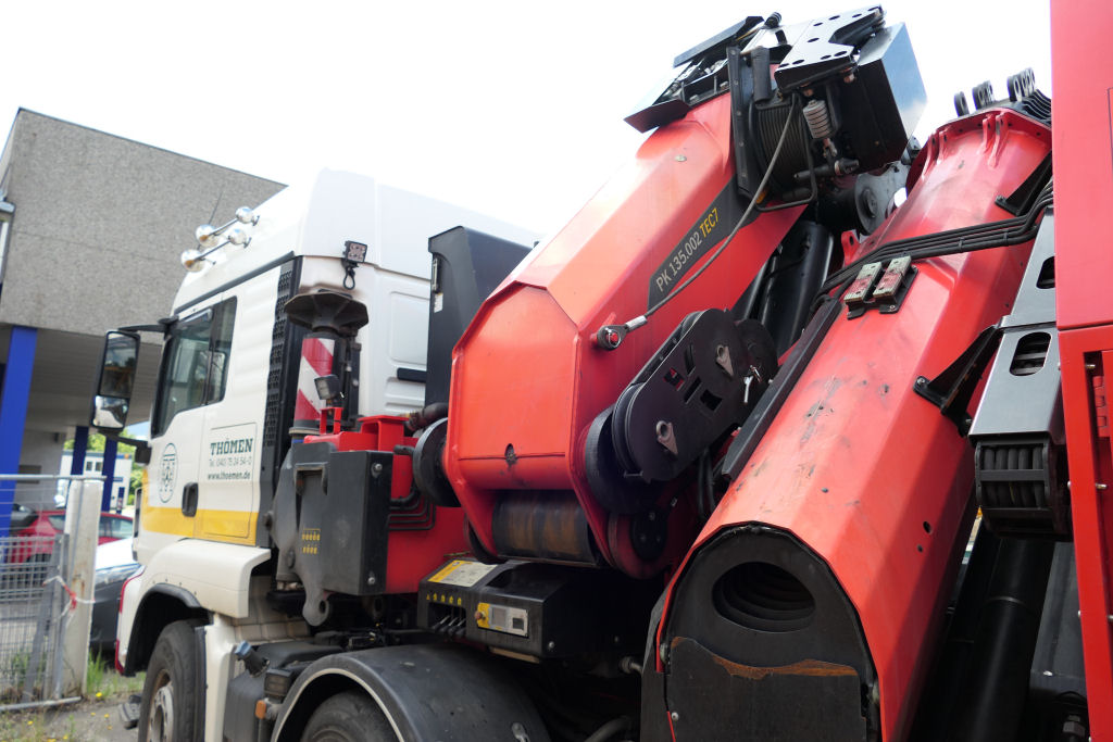 Im Mai 2022 mietete Thömen innerhalb der Hüffermanngruppe die MAN 35.480 TGS mit Palfinger PK 135.002 TEC 7 Ladekran