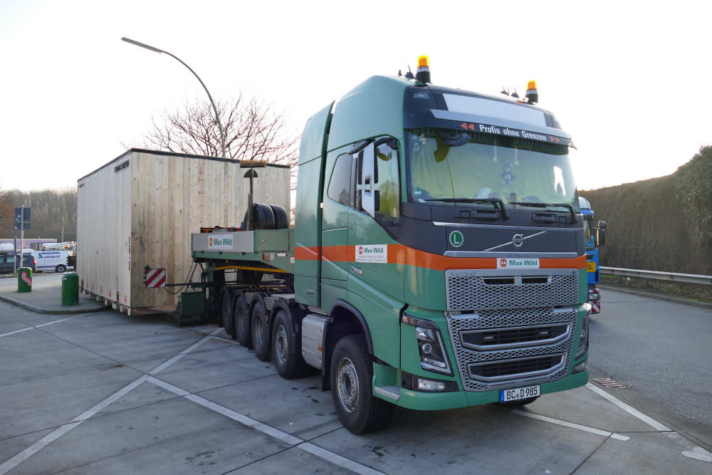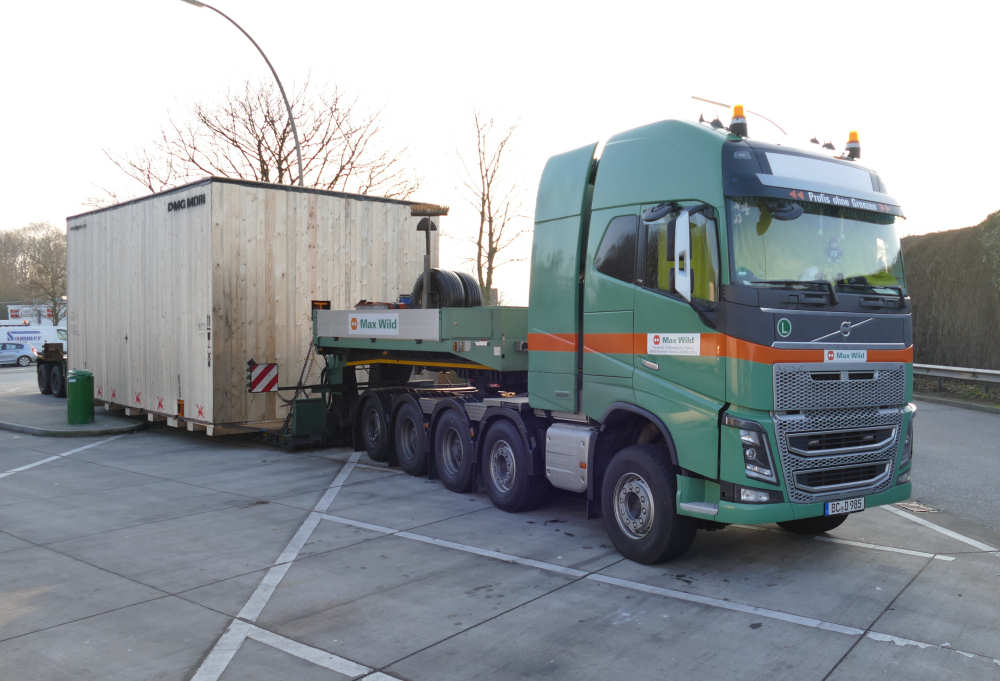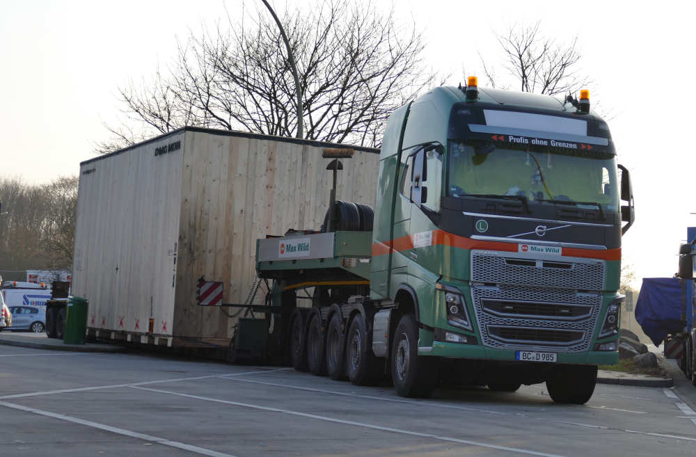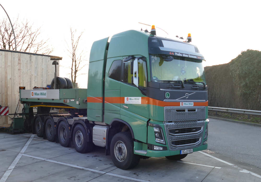 Volvo FH 16 660 10x4 Euro 6 mit Goldhofer VP 4 Satteltieflader und Maschinenkiste