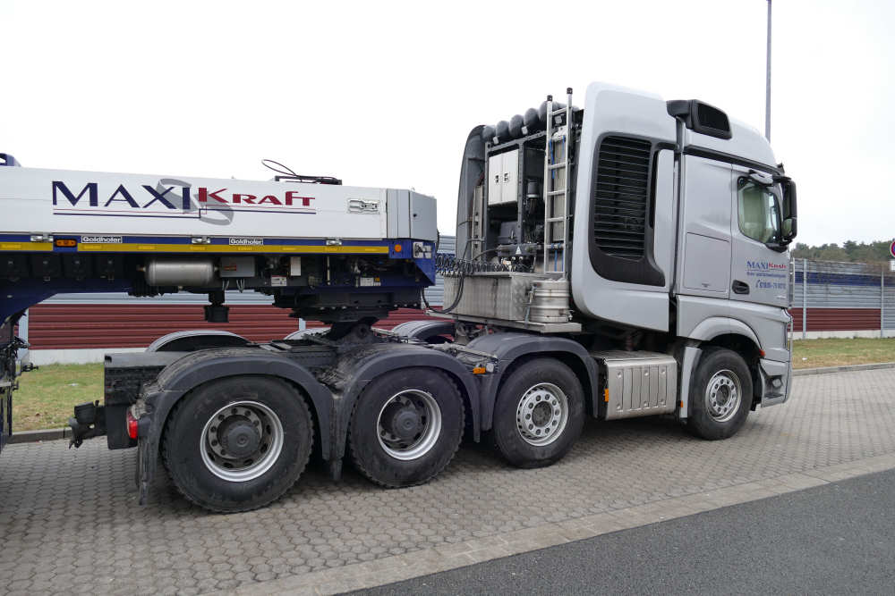 MB 4163 Actros SLT mit Goldhofer 3/5 Tieflader und Walzenständer Transport