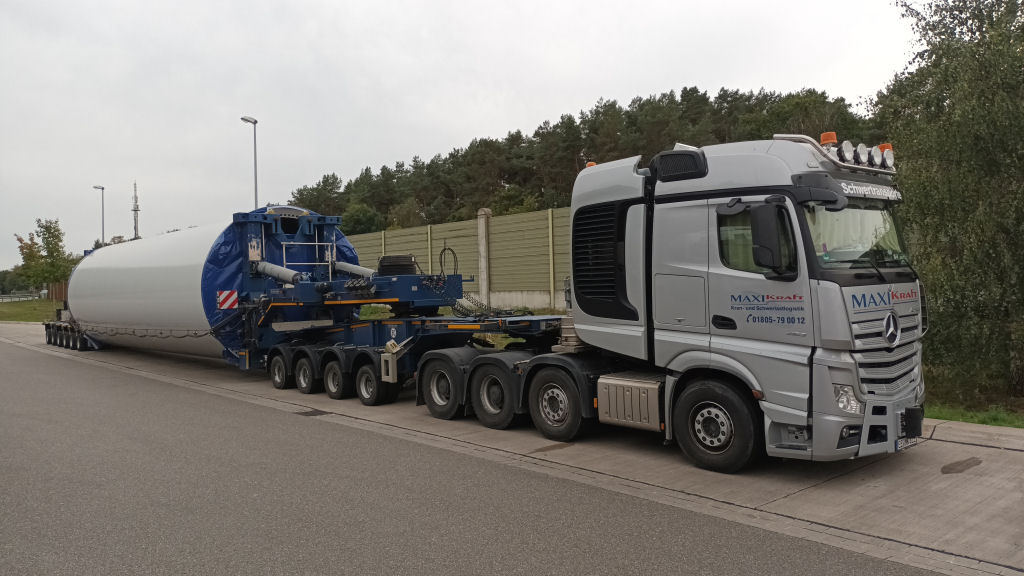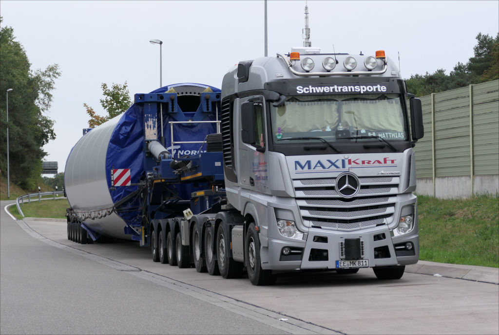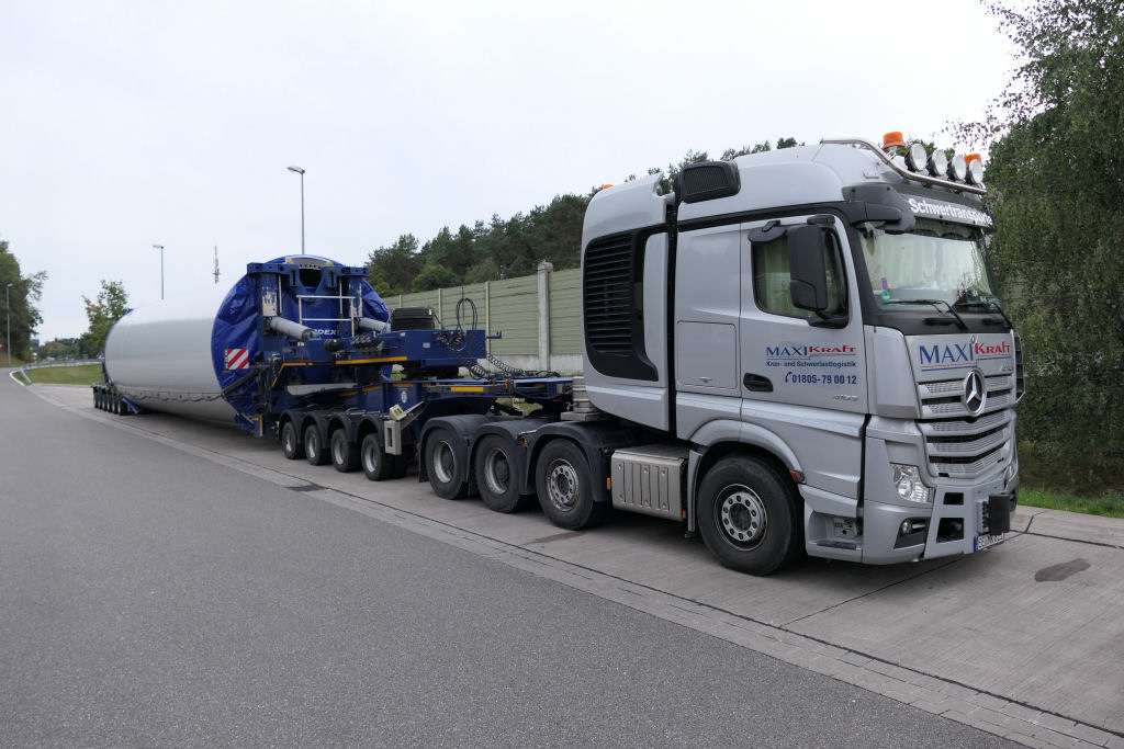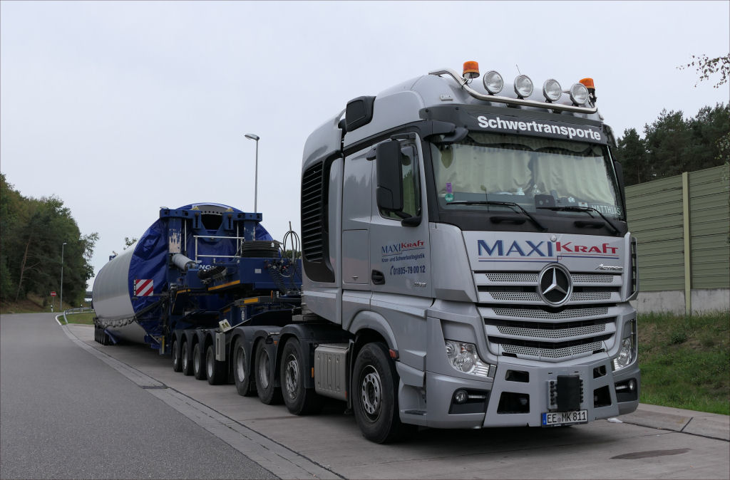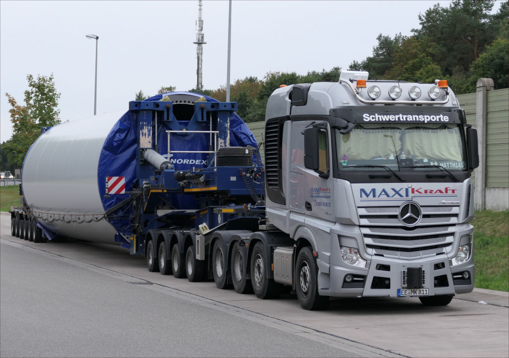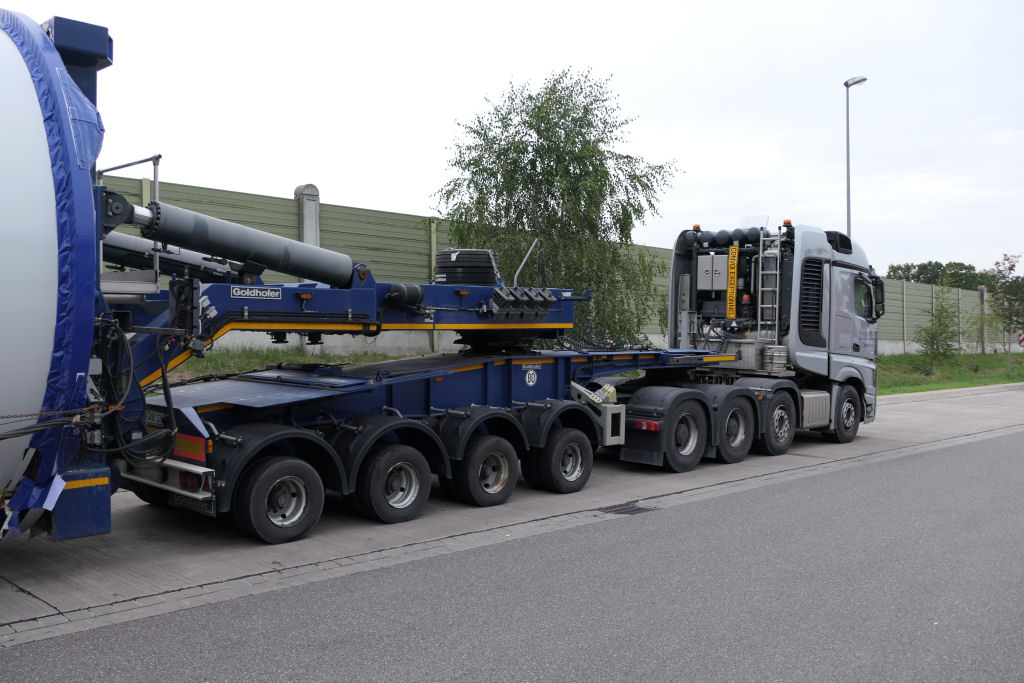 MB 4163 Actros SLT mit Goldhofer 4-6 Rohradapterkombination, leer und mit Ladung