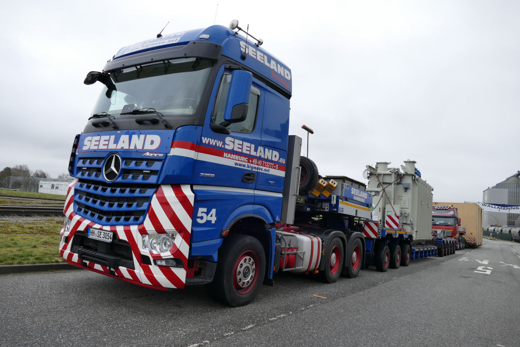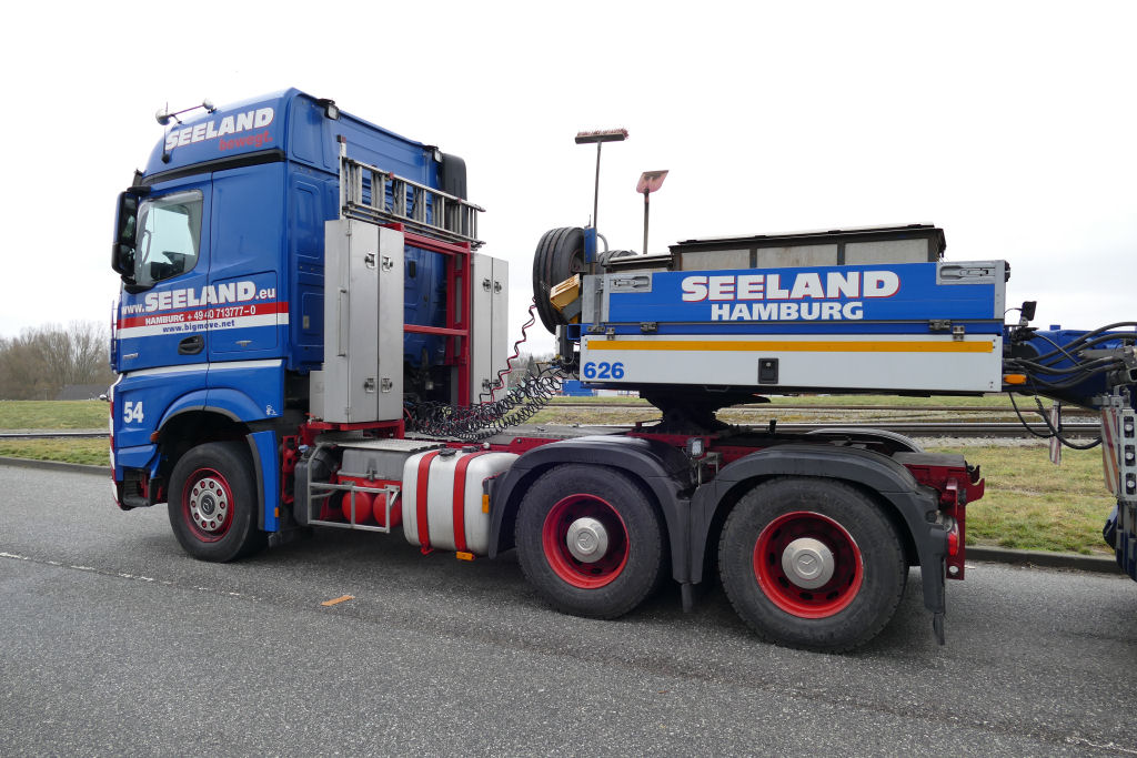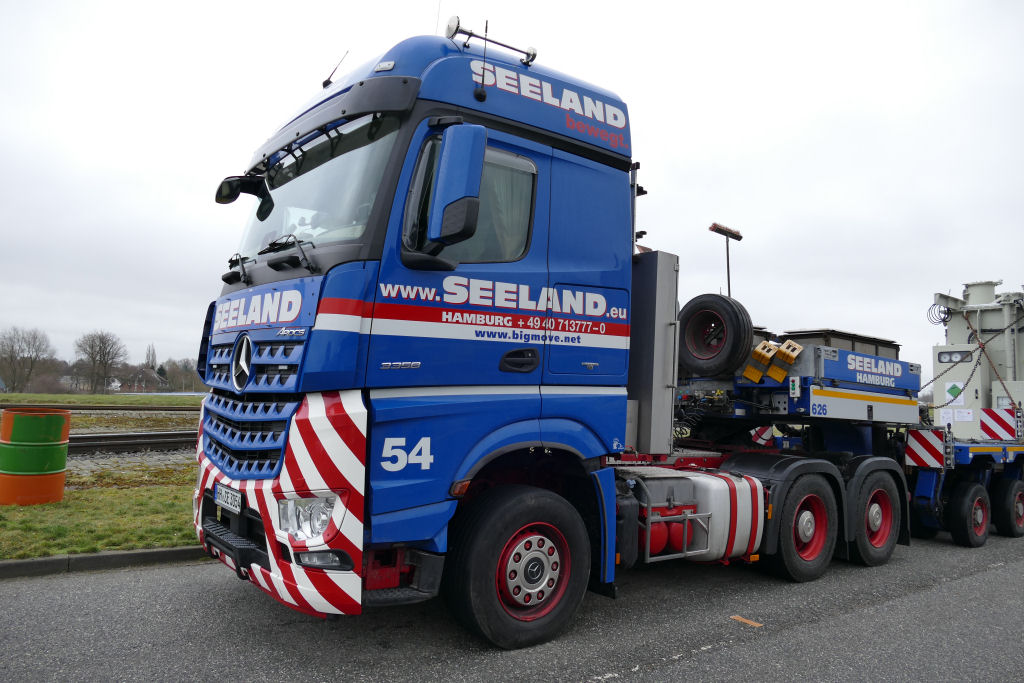 Die Transportkombination bestand aus MB 3358 Arocs und Scheuerle Eurocompact 3-5 Tieflader,