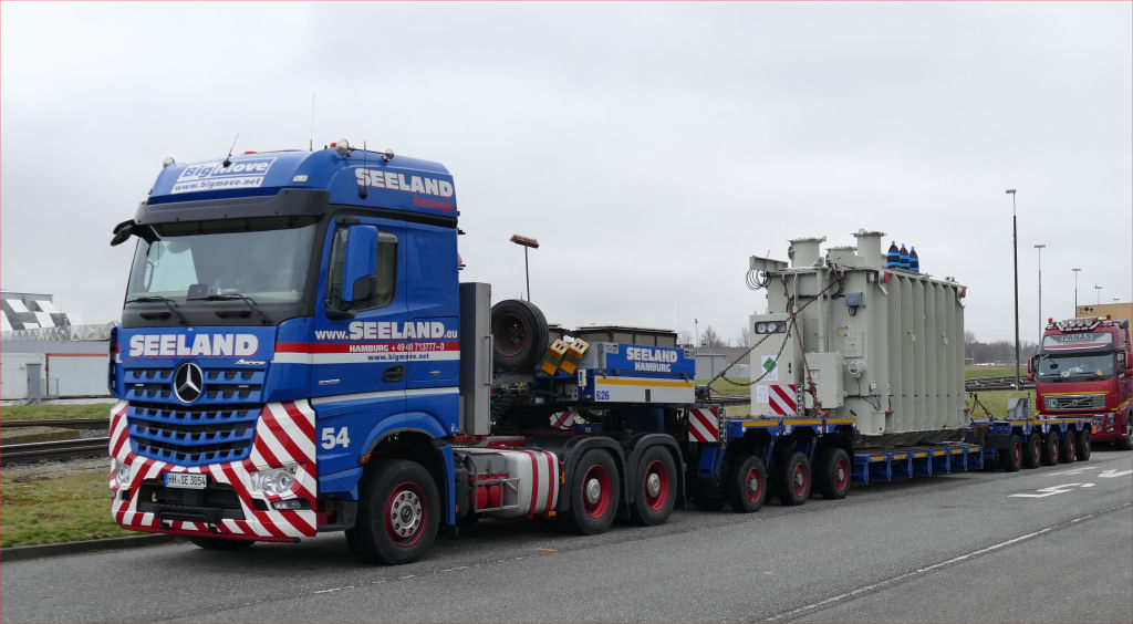 MB 3358 Arocs mit Scheuerle Eurocompact 3-5 Tieflader (Big Move Chamäleon 2) beladen mit Trafo