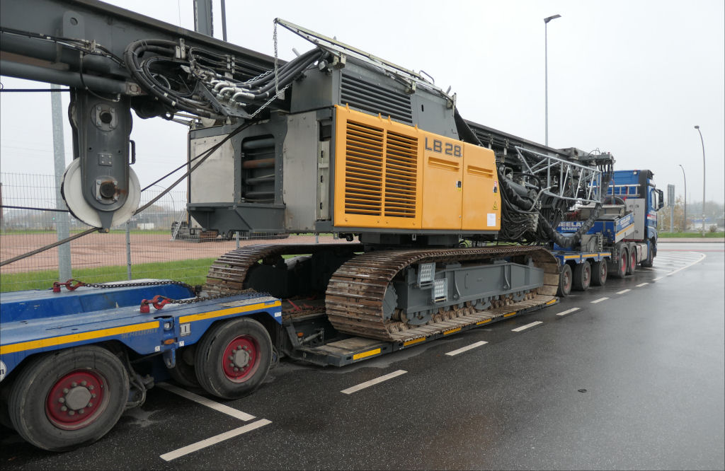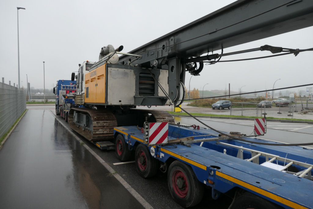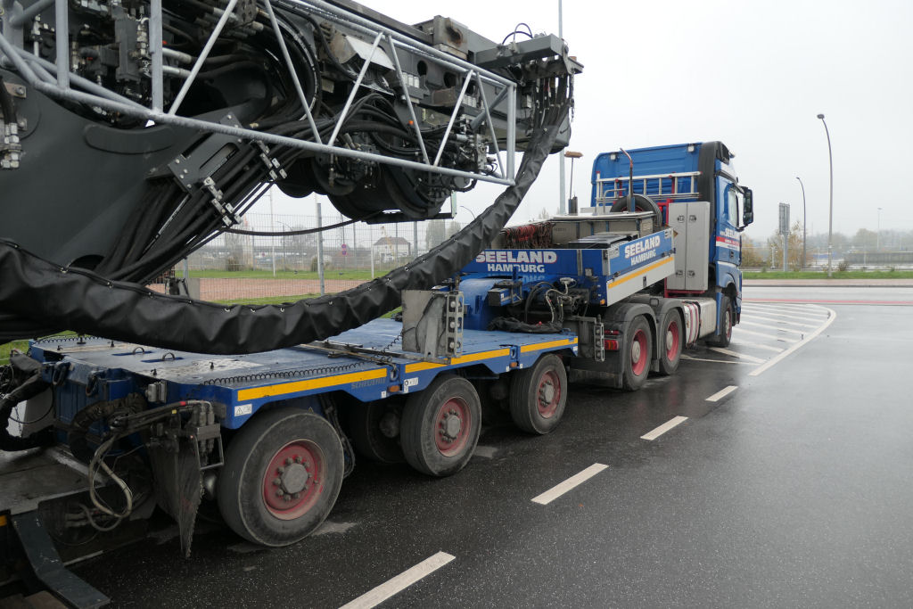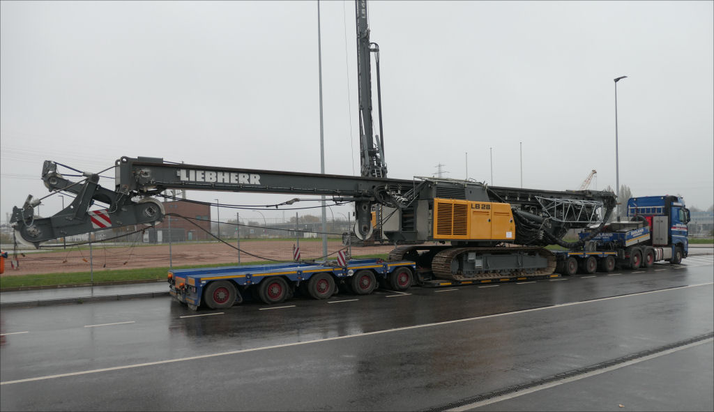 MB 3358 Arocs mit Scheuerle Eurocompact 3-5 Tieflader (Big Move Chamäleon 2) mit Liebherr LB 28 für den Export