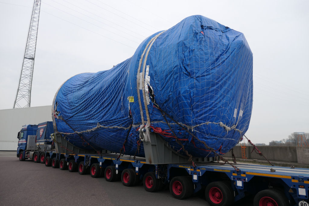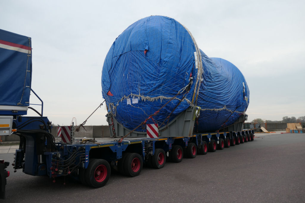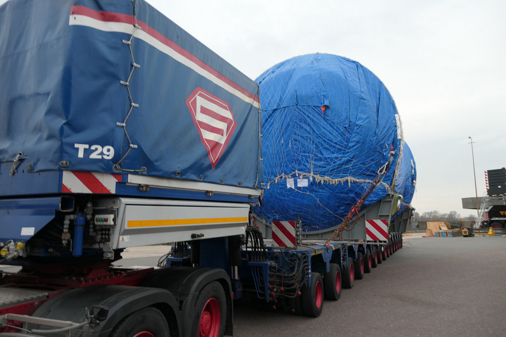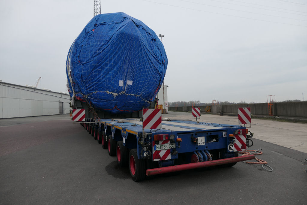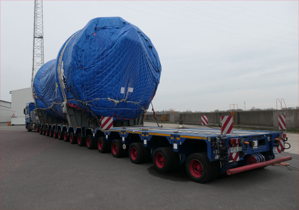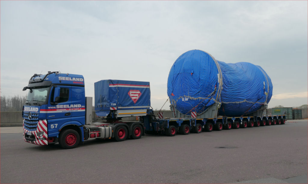 MB 3358 Arocs mit Scheuerle Intercombi 15 Achs Sattelroller, Transport eines Anodenofens