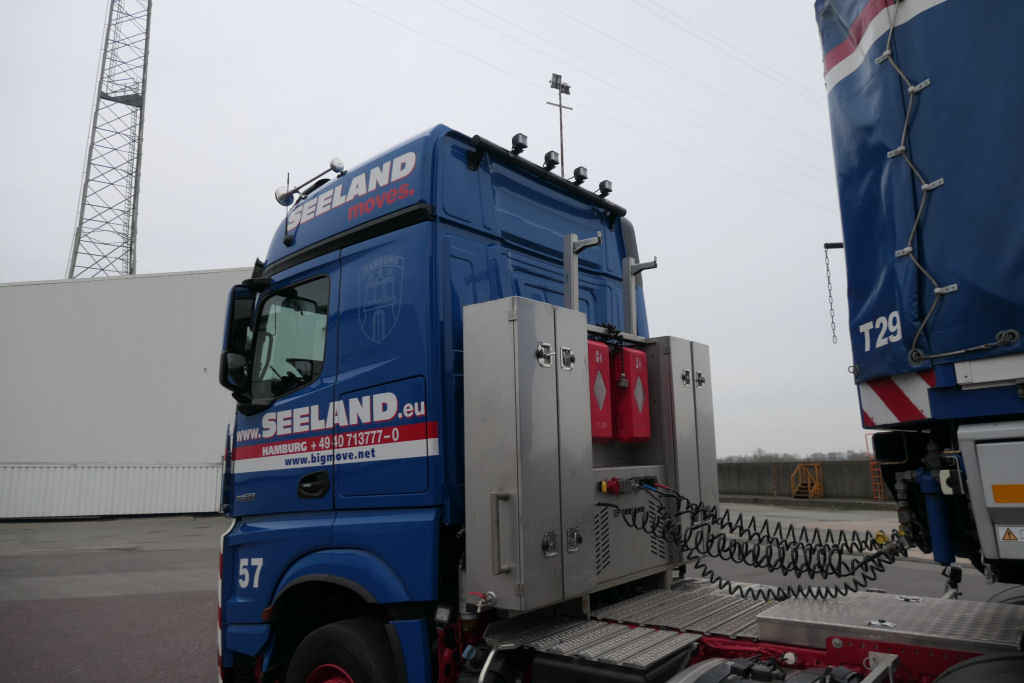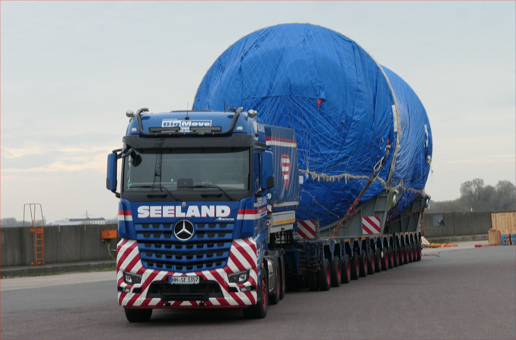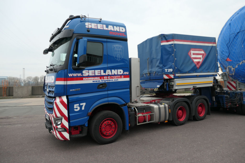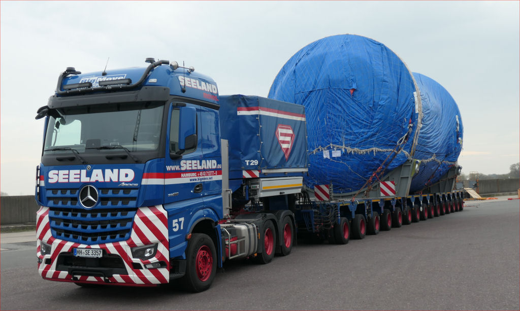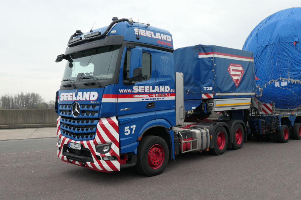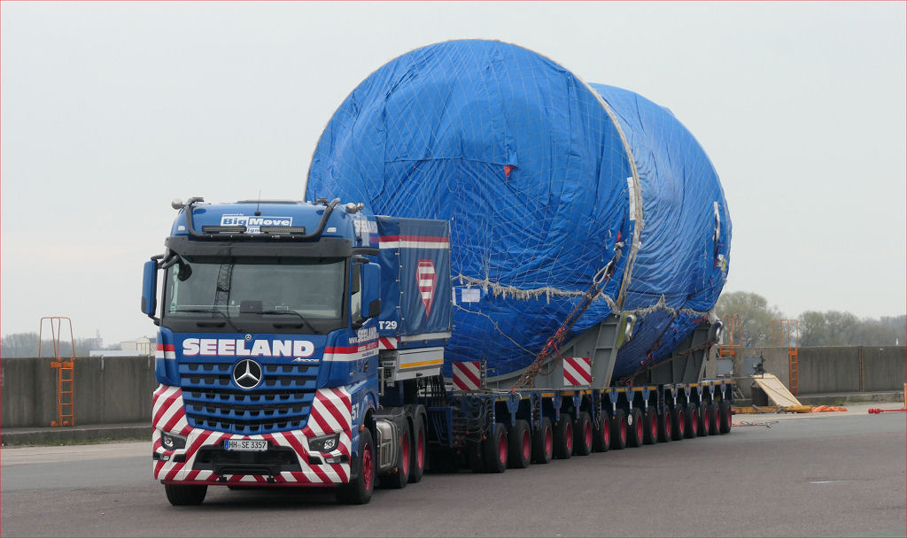 Die Transportkombination bestand aus MB 3358 Arocs und Scheuerle Intercombi 15 achs Sattelroller.
