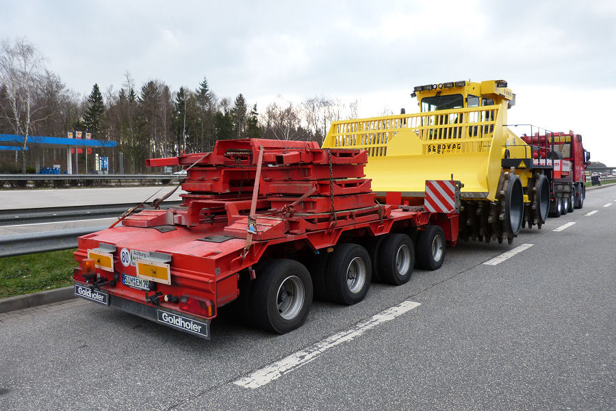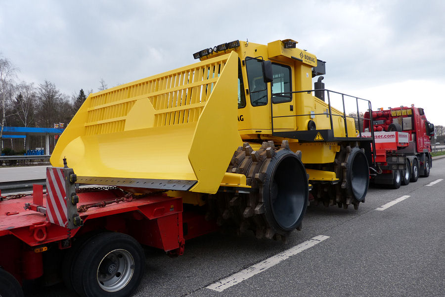 MB 4155 MP 3 mit Bomag Müllverdichtertransport für den Export