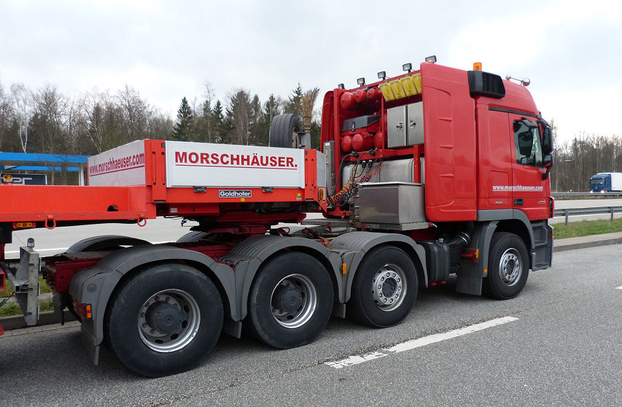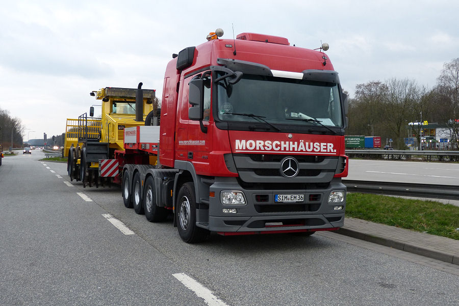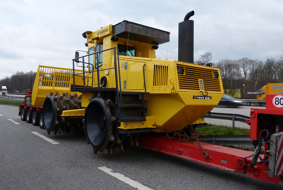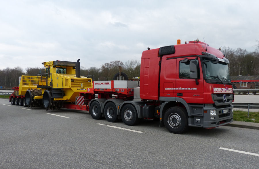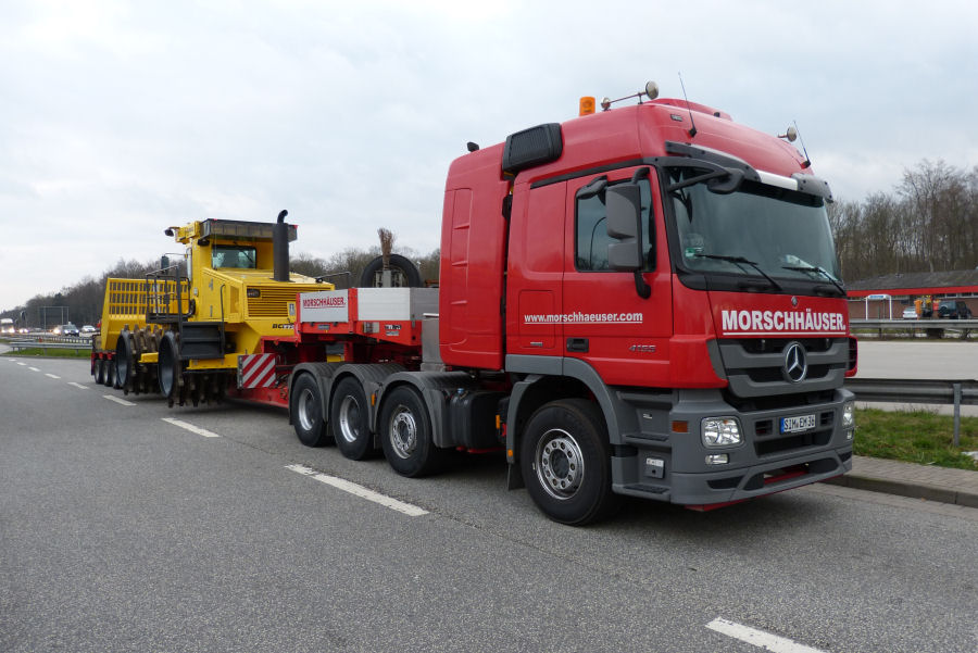 MB 4155 MP 3 mit Bomag Müllverdichtertransport für den Export