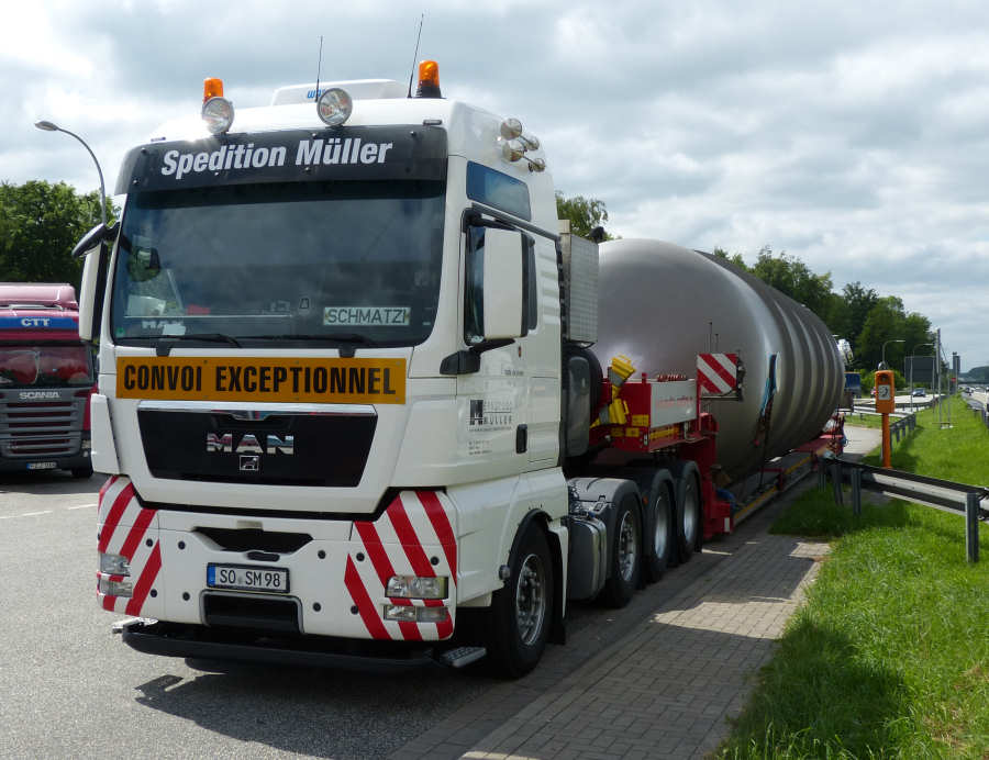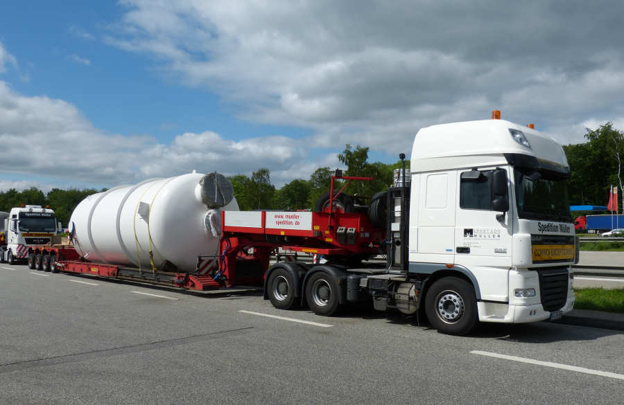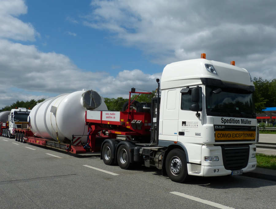 DAF 105.510 und MAN 41.540 mit Behältertransporten Richtung Norden