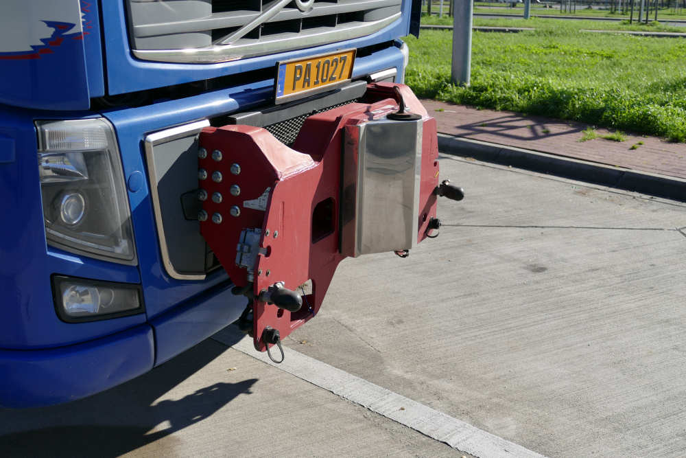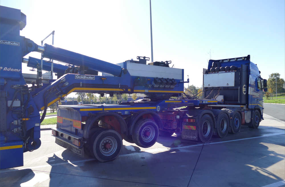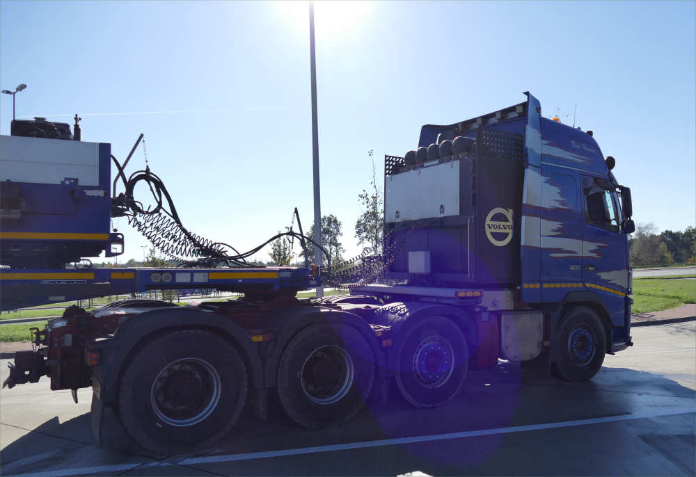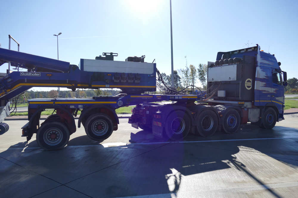 Volvo FH 16 600 "Blue Heaven" mit Goldhofer 2/5 Rohradapterkombination auf Leerfahrt