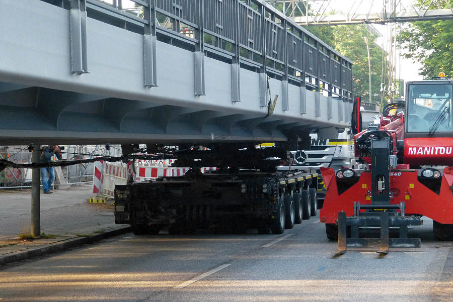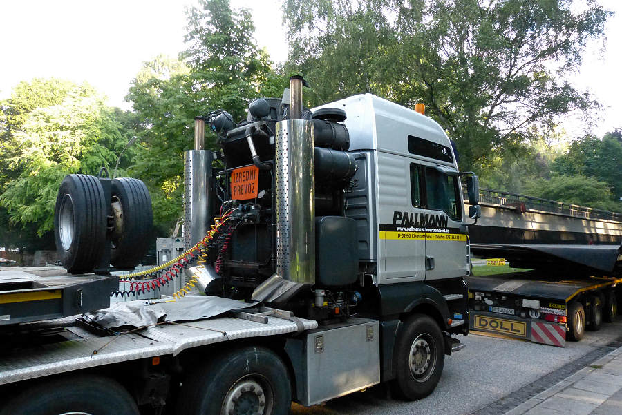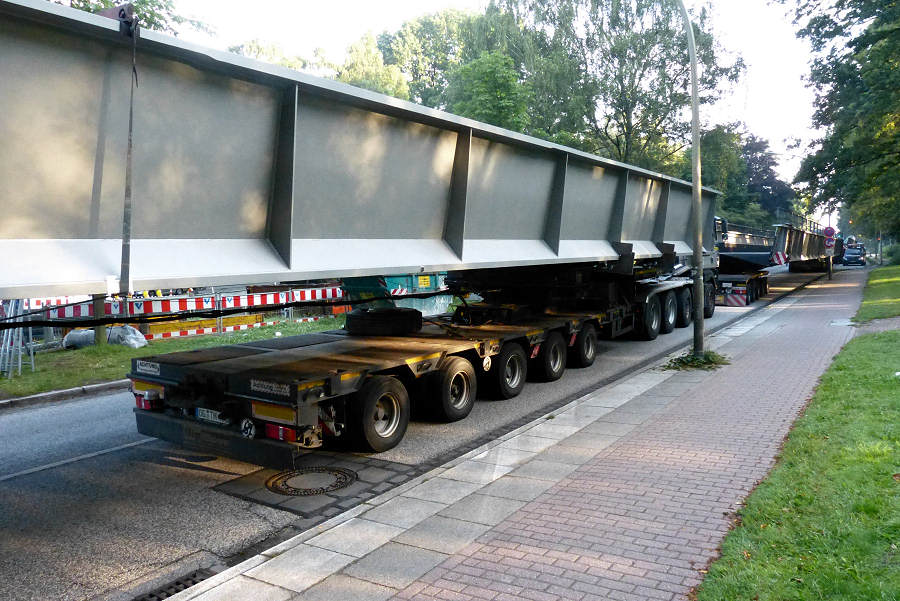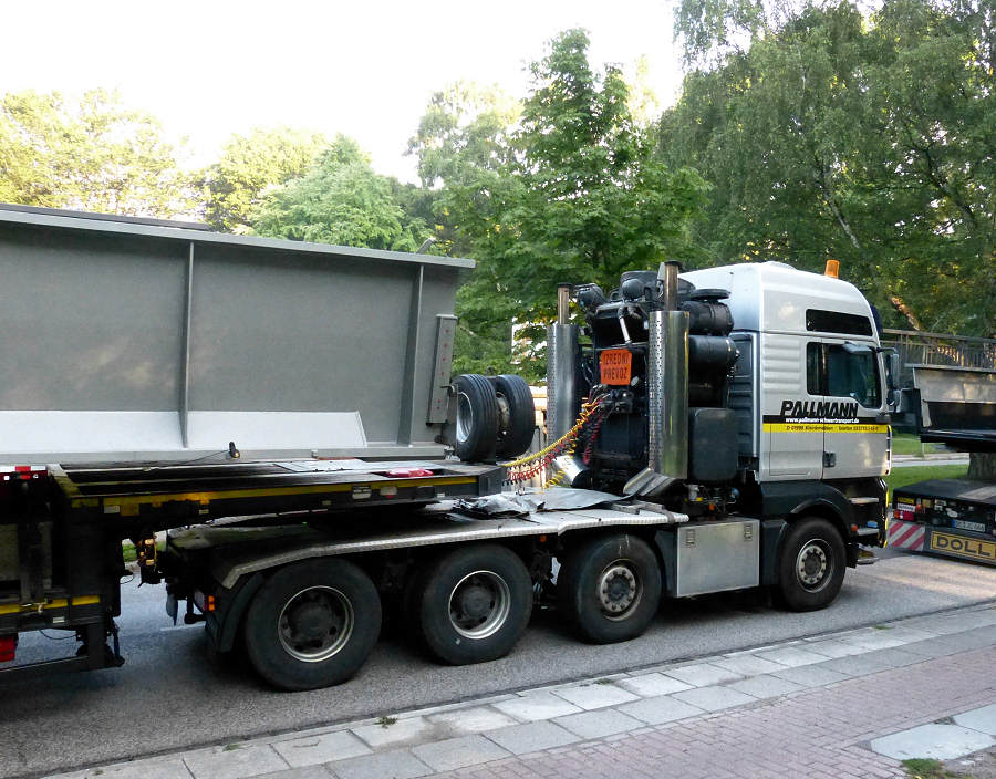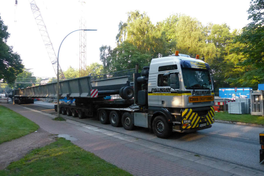 MAN 41.660 TGA mit Goldhofer Nachläuferkombination und 42 m Eisenbahnbrücke