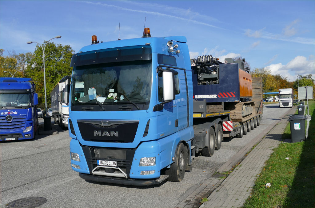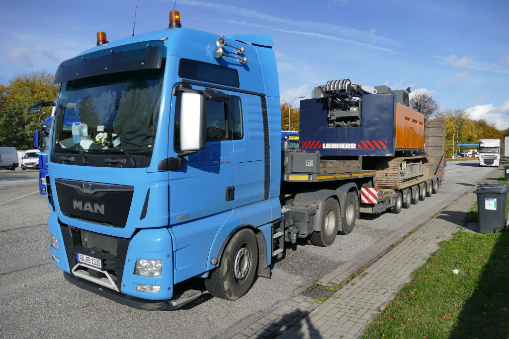 Die Transportkombination bestand aus MAN 33.560 TGX mit Broshuis sechachs Semitieflader.