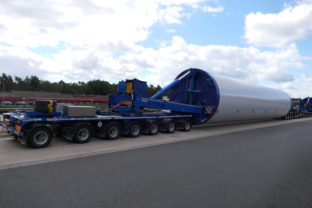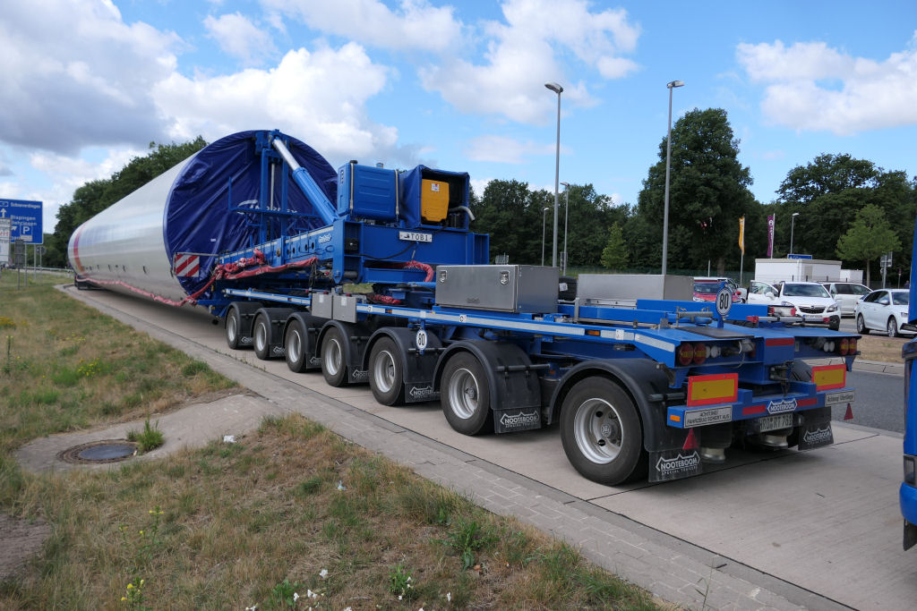 Transporten von WEA Turmsektion, auf dem Rasthof Lüneburger Heide