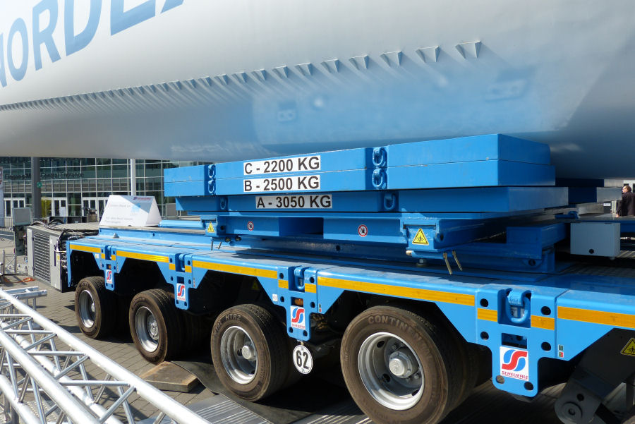 Im September 2014 stellte die Scheuerle Fahrzeugfabrik einen Windflügeltransporter der zweiten Generation