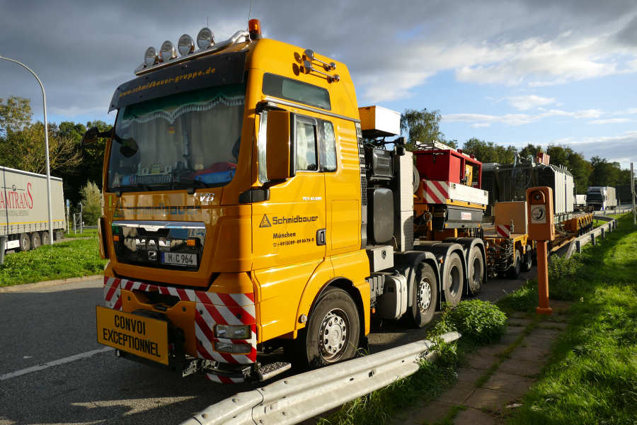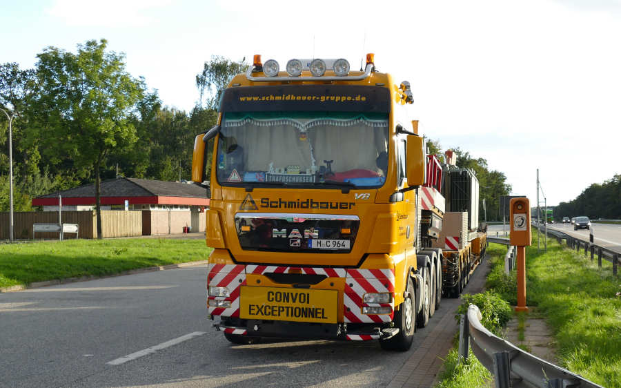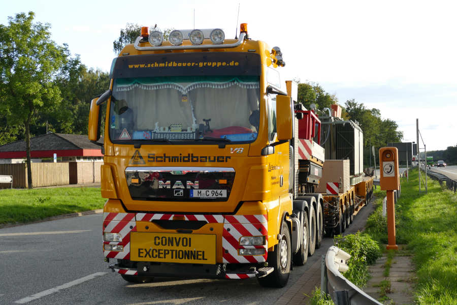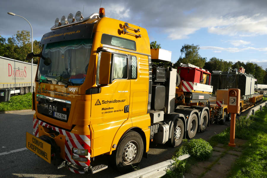 einen Trafo Transport der Schmidbauer Niederlassung München fotografieren.