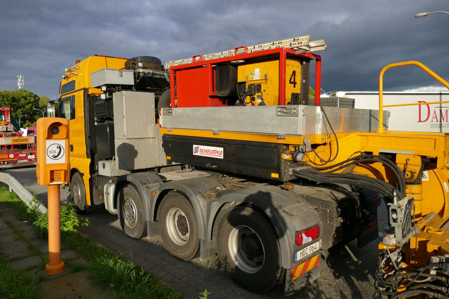 Bei diesem Transport war eine MAN 41.680 TGX XXL der Niederlassung München vor dem Tieflader,