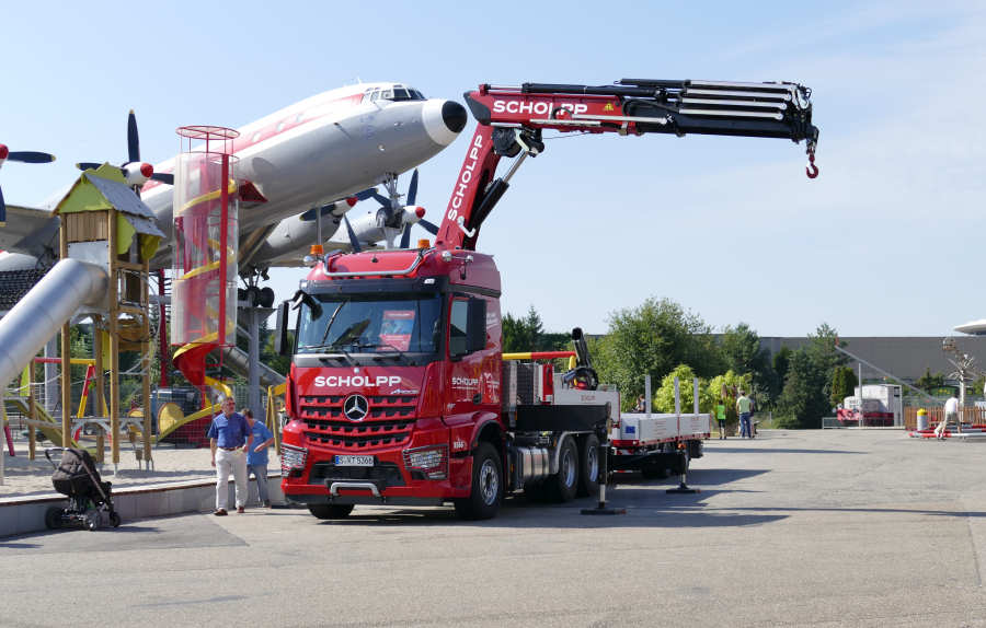 Der Zusatzausleger ist auf den Bildern auf der Ladefläche zu sehen und war nicht montiert.
