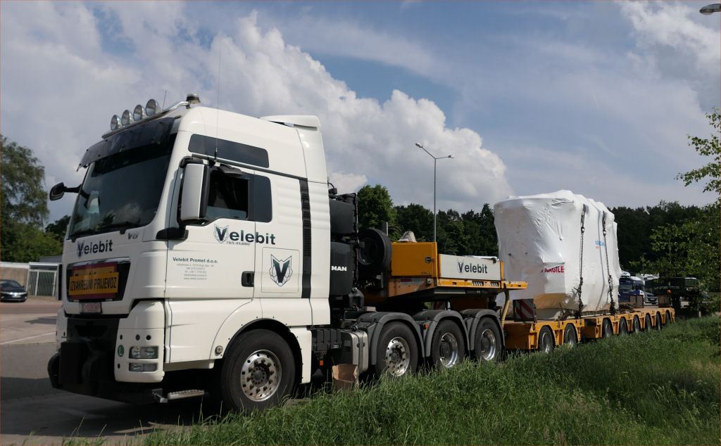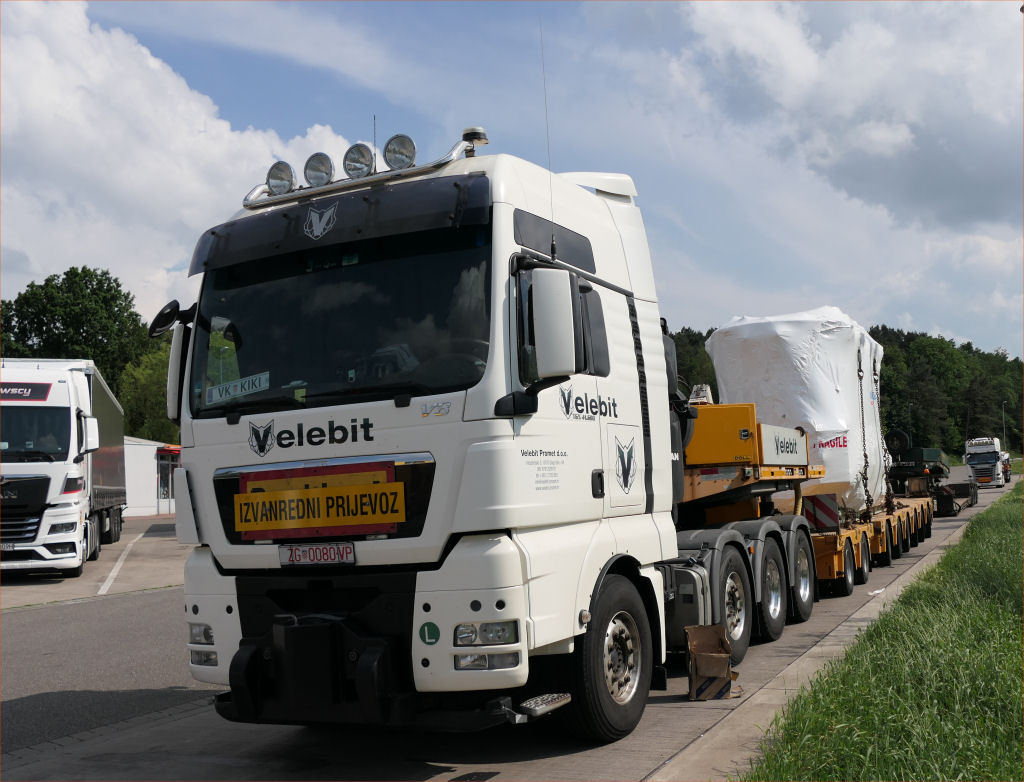 Die Transport Kombination bestand aus MAN 41.680 TGX und Doll Panther 2-6 Tieflader,