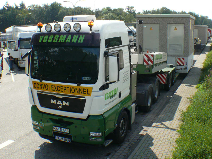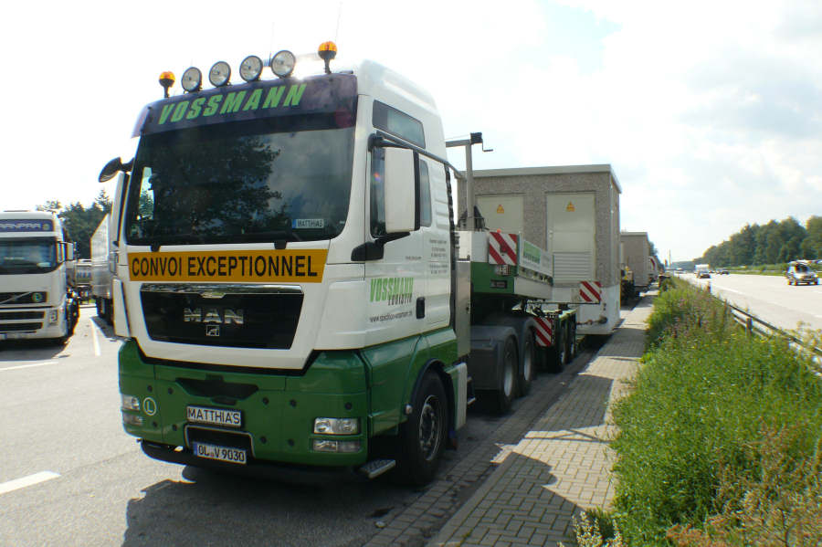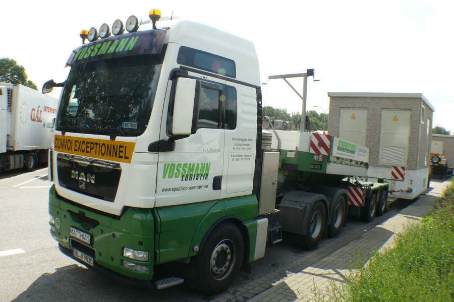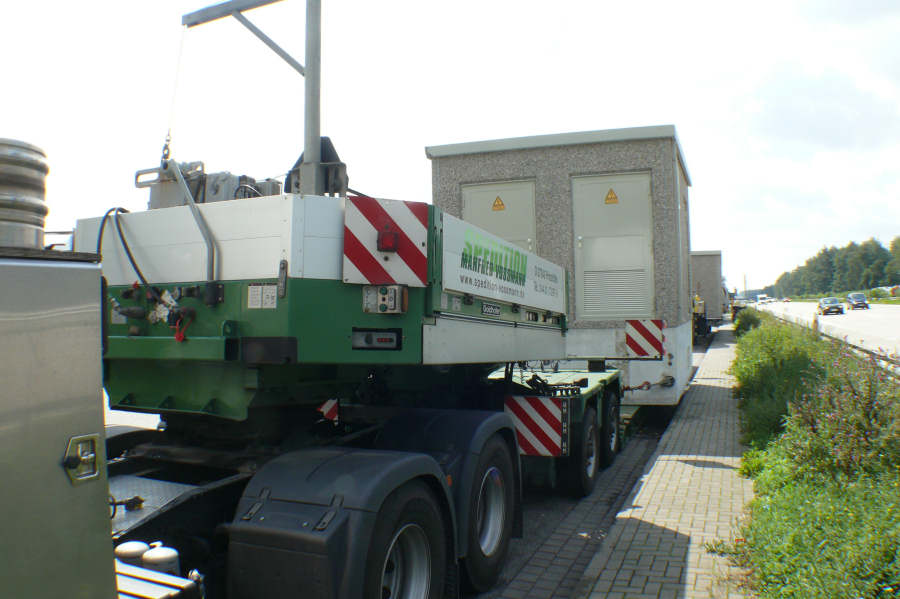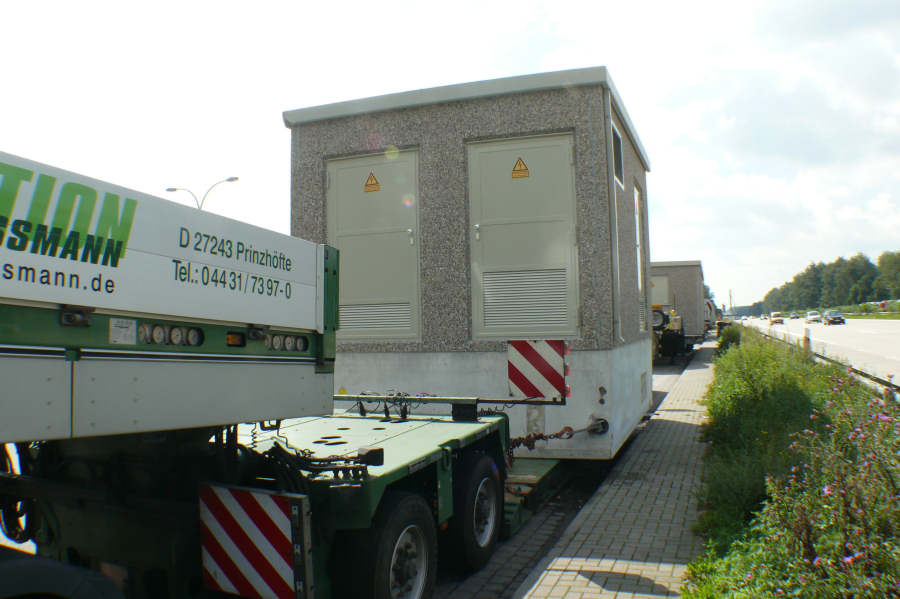 Unter anderem war auch dieser Transport der Spedition Vossmann Logistik mit einer Trafostation dabei.