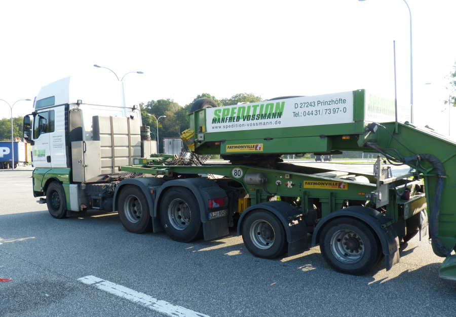 Eine MAN 26.540 TGX und MB 2855 MP 3, jeweils mit mit Faymonville 2/achs Jeepdolly,