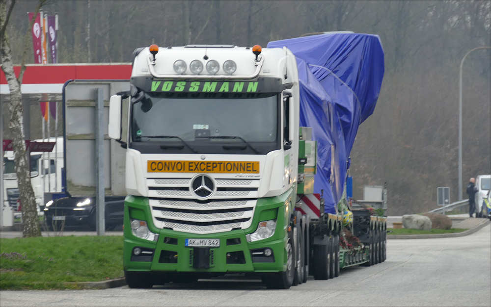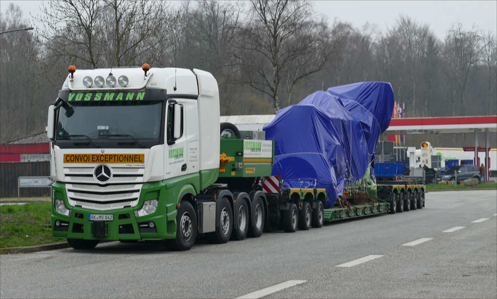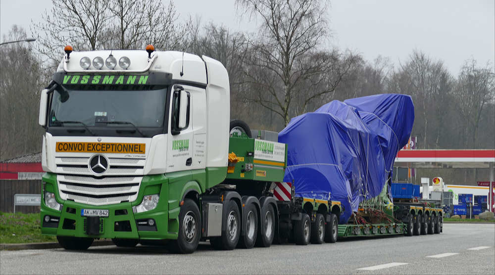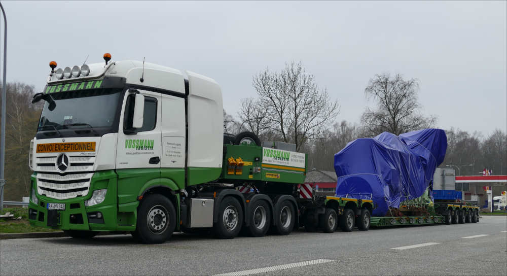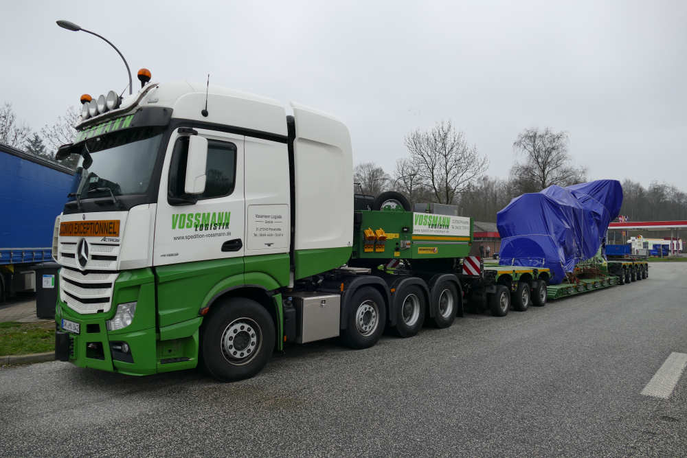 Die Schwerlastkombination bestand aus MB 4163 Actros SLT und einem 3-5 Faymonville Combimax Tieflader,