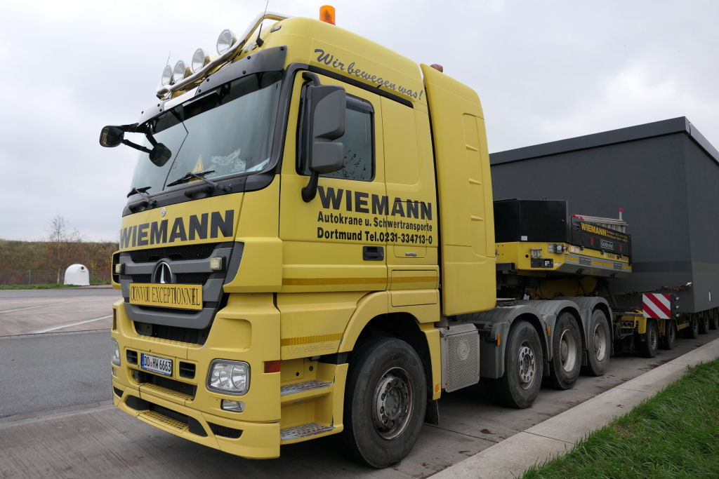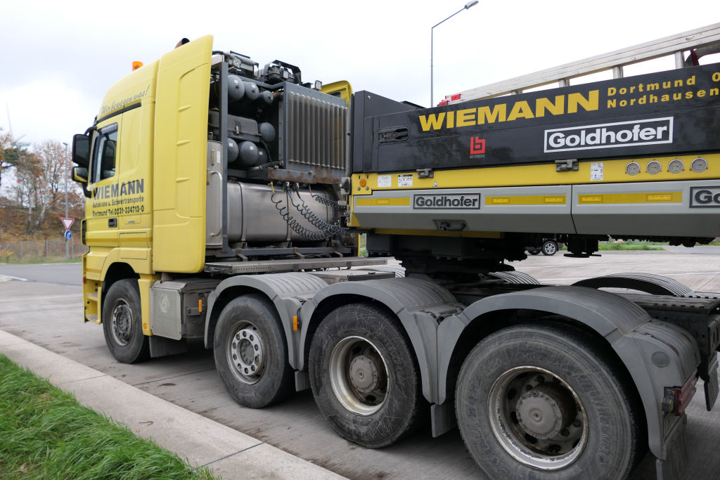 Die Schwerlastkombination bestand aus MB 4165 Actros MP 3 Titan mit Goldhofer STZ-PK 8 (2+6)