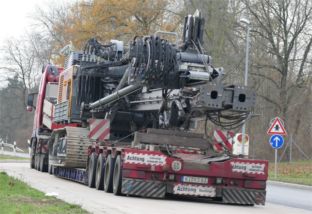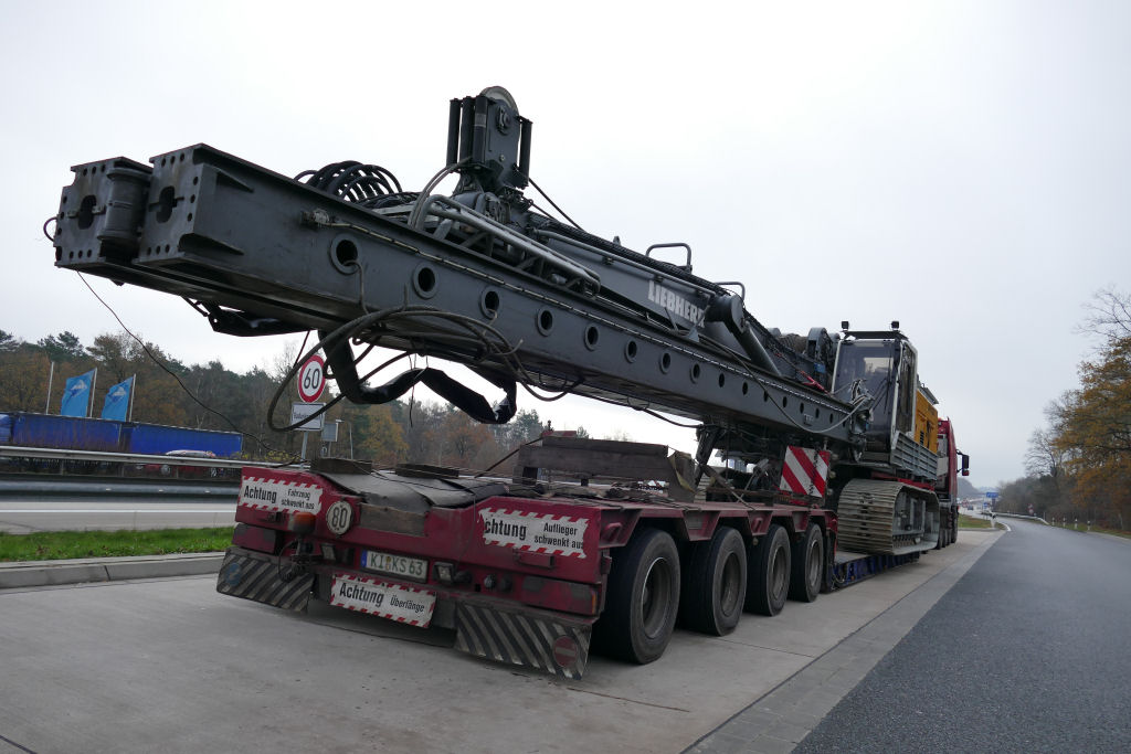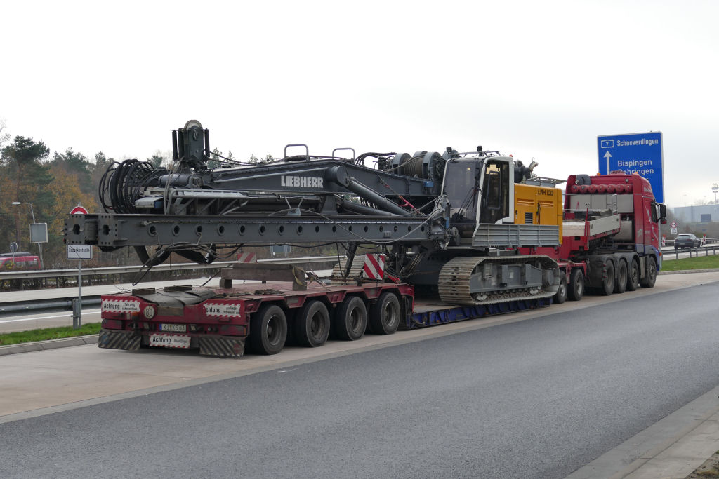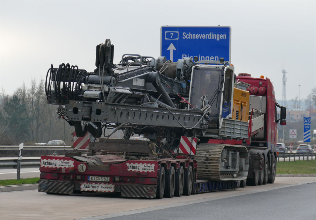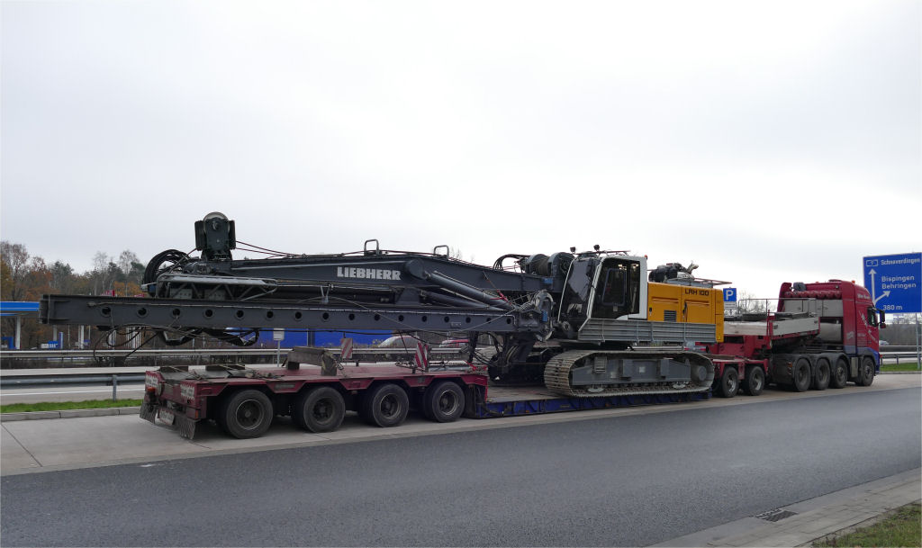 Volvo FH 16 8x4 mit Goldhofer 2-4 Tieflader und Liebherr LRH 100