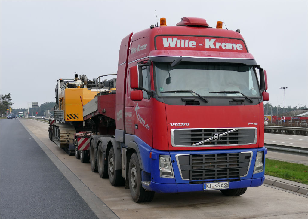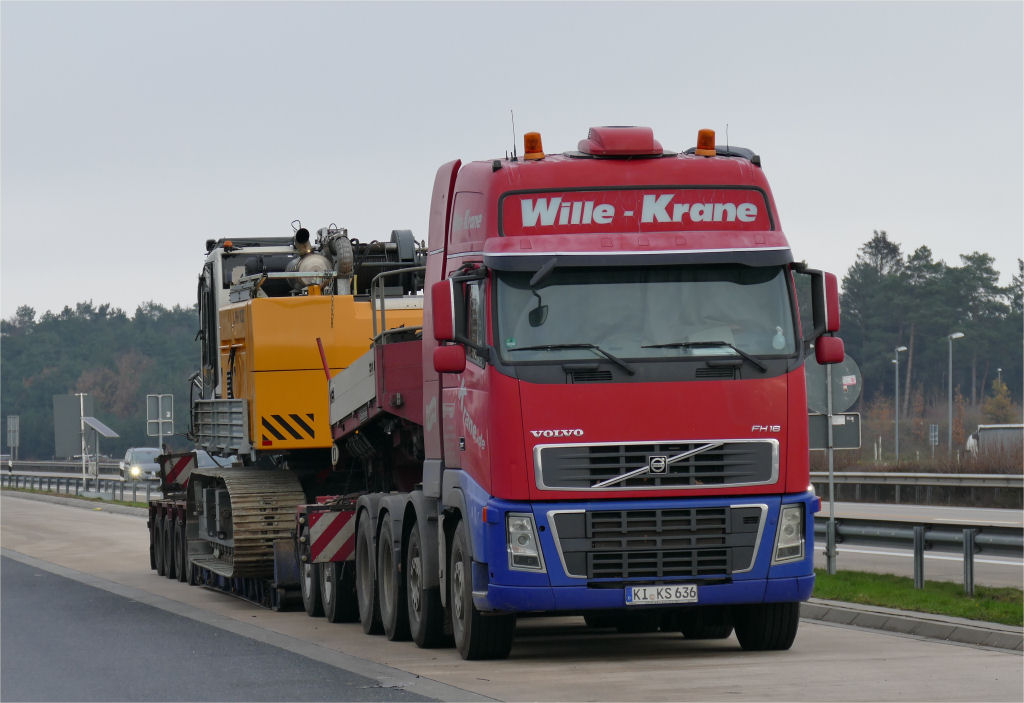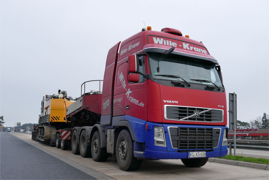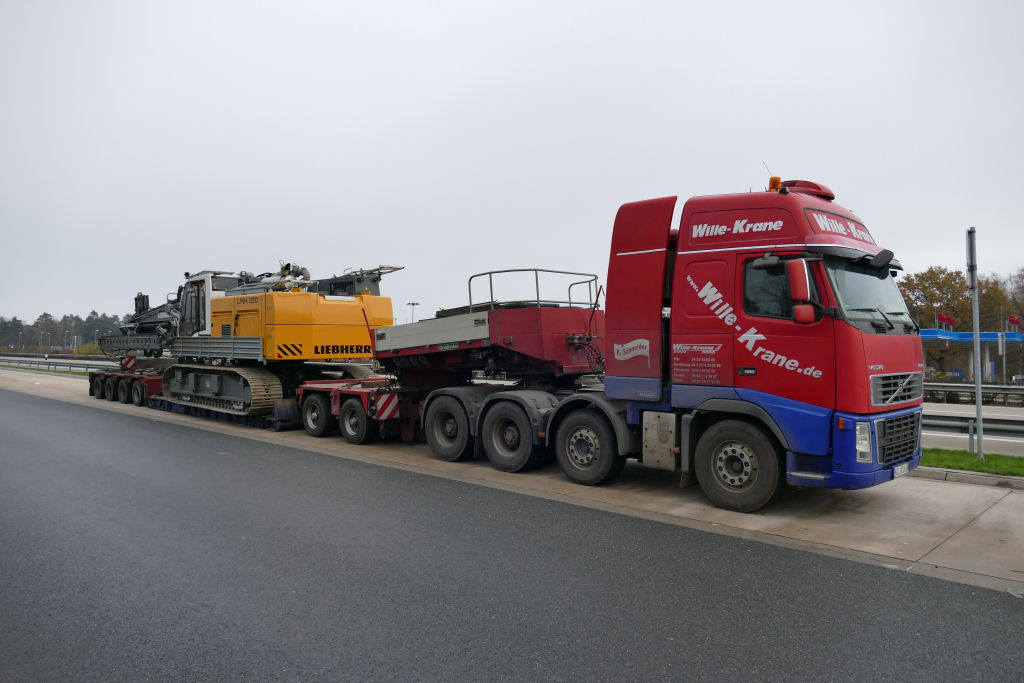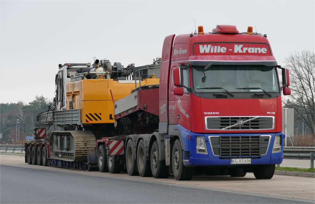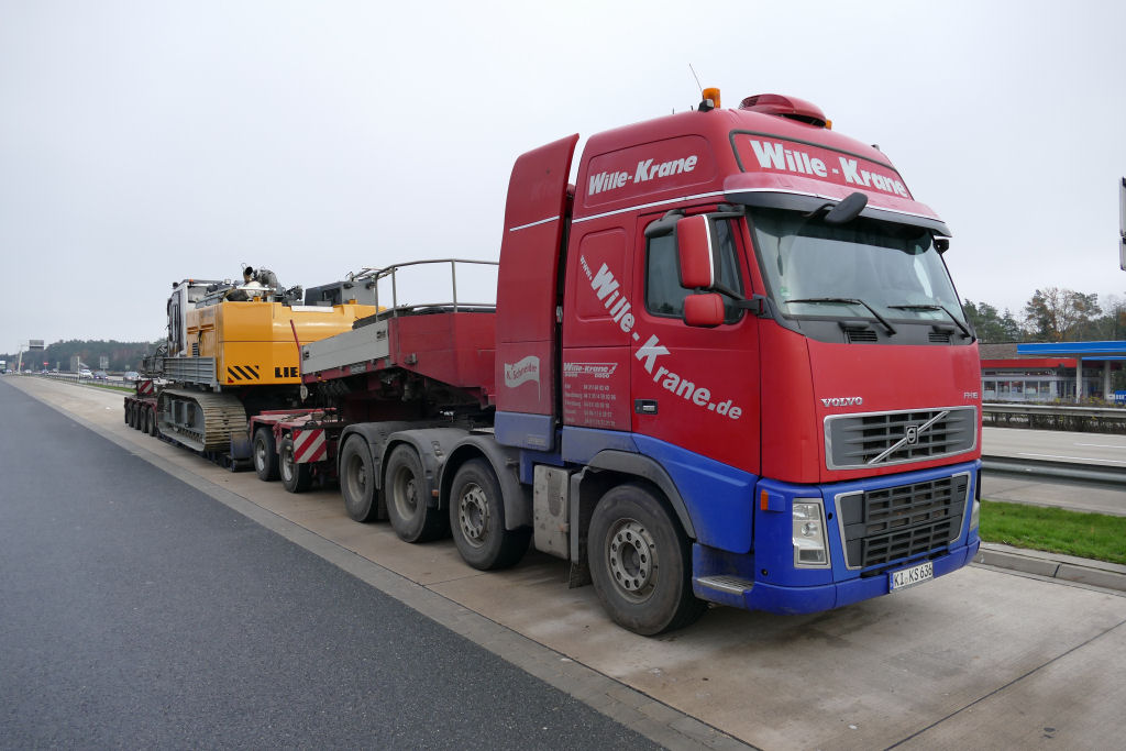 Volvo FH 16 8x4 mit Goldhofer 2-4 Tieflader und Liebherr LRH 100
