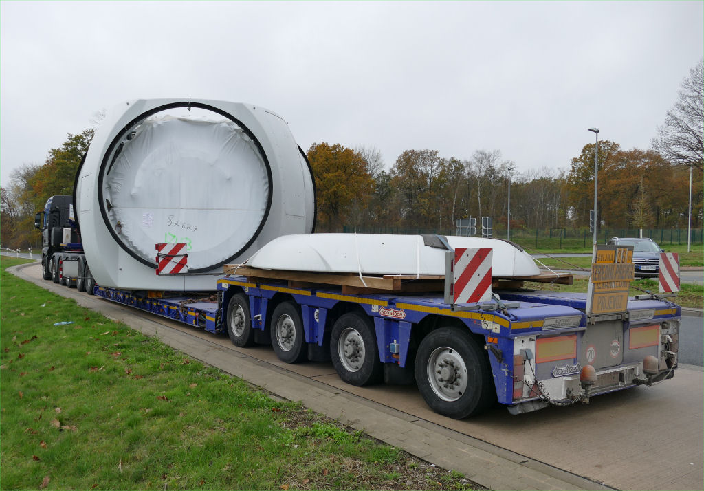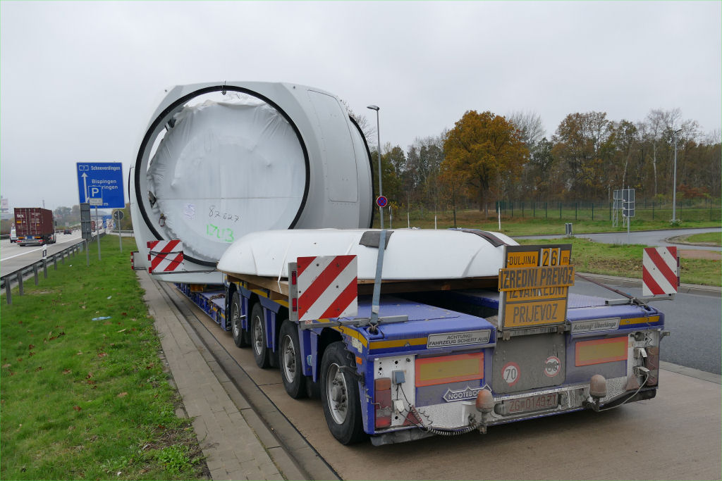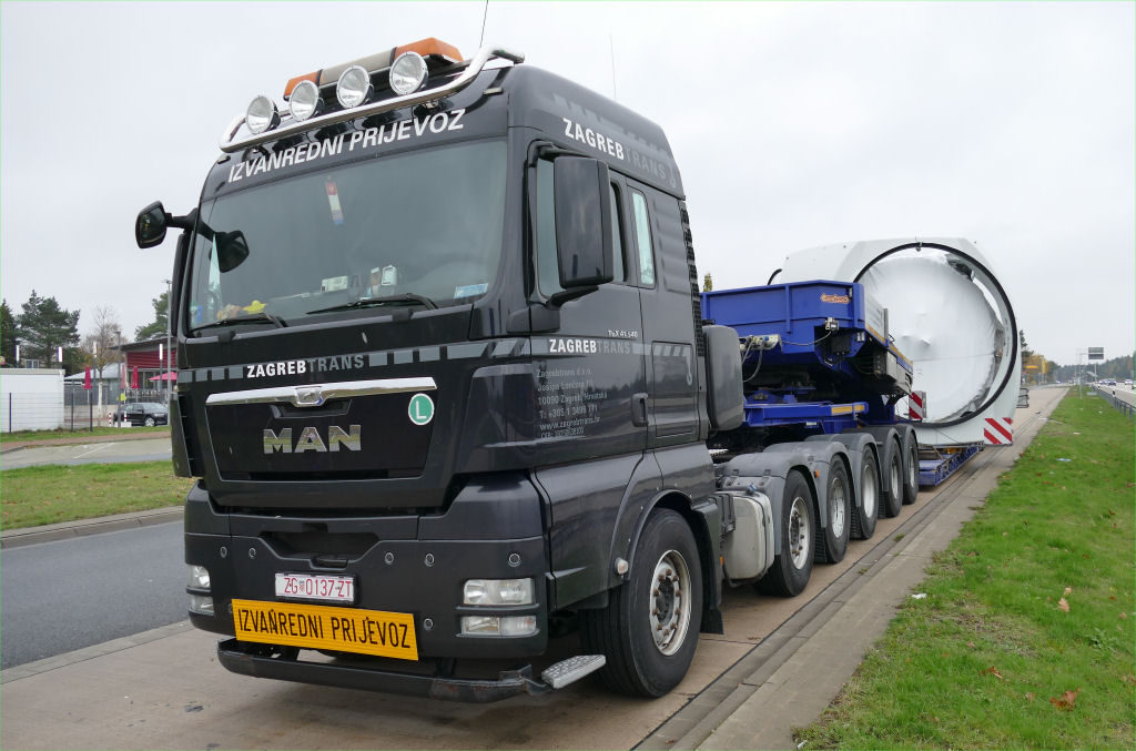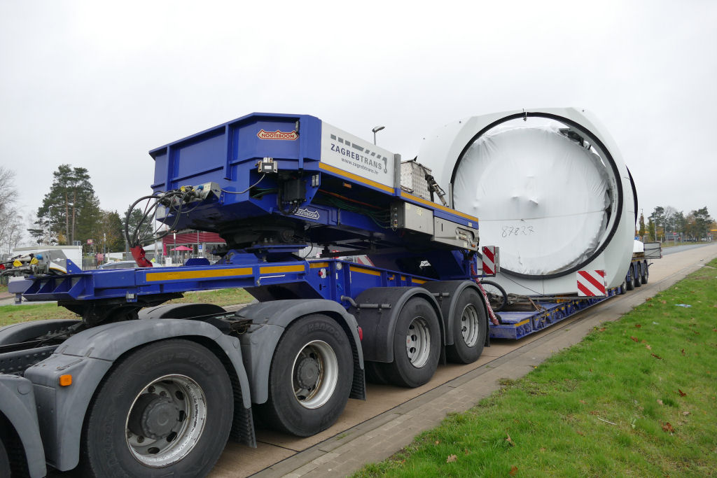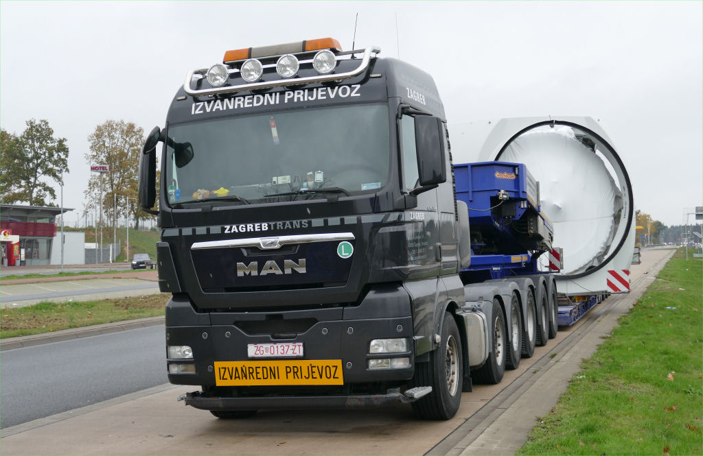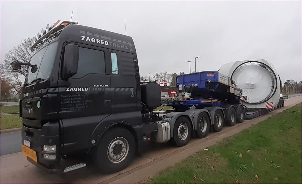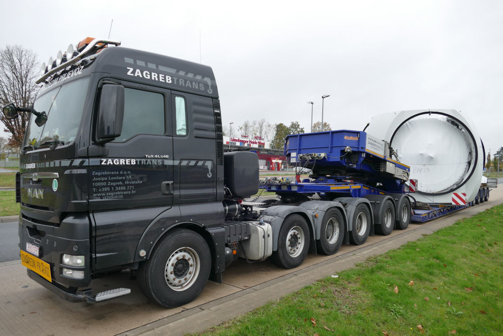 Es wurde eine Nordex WEA Nabe mit einem Gewicht von rund 43 t für einen Windpark in Kroatien transportiert.