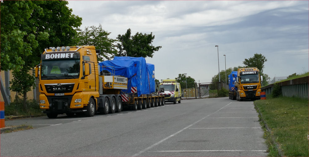 Ende Mai 2020 holte Bohnet zwei Transporte mit Pressenteilen für die Auto Industrie in Wismar vom