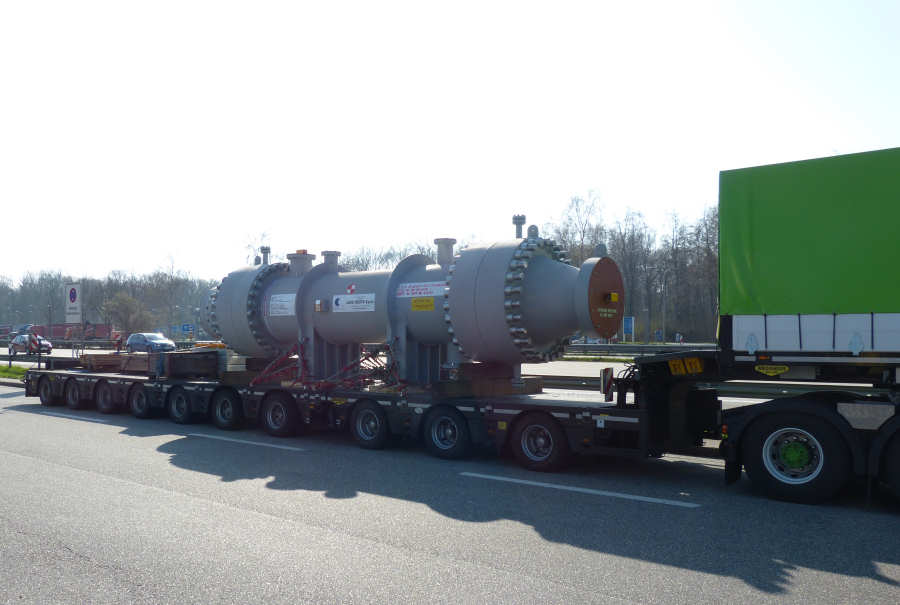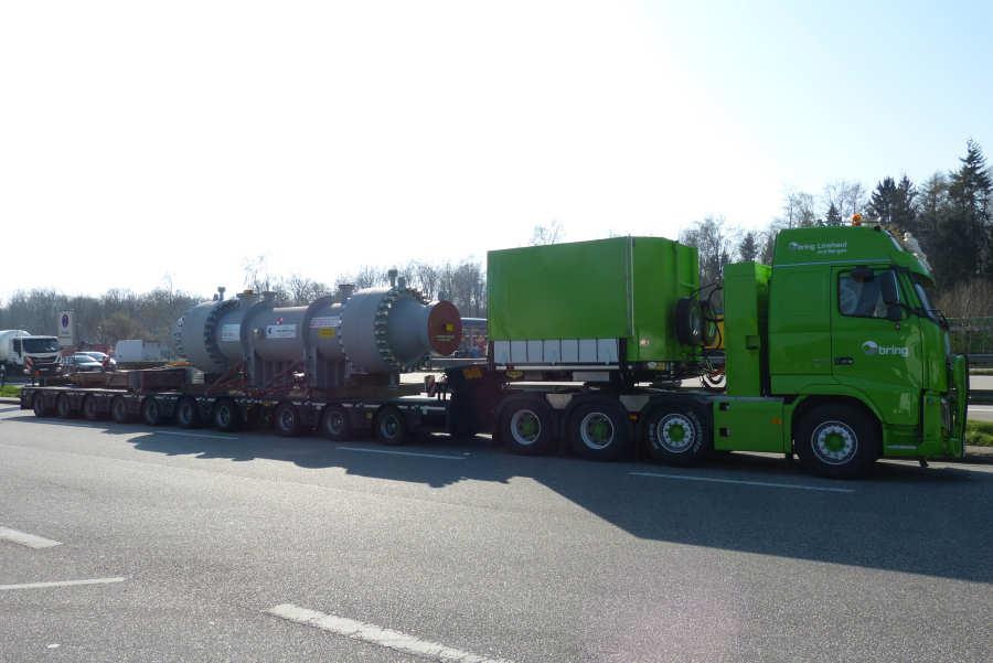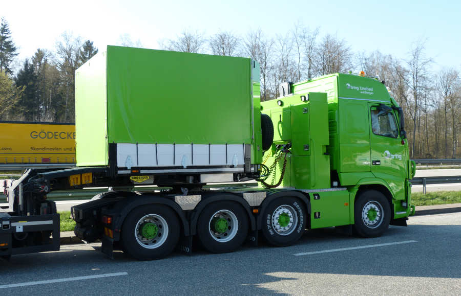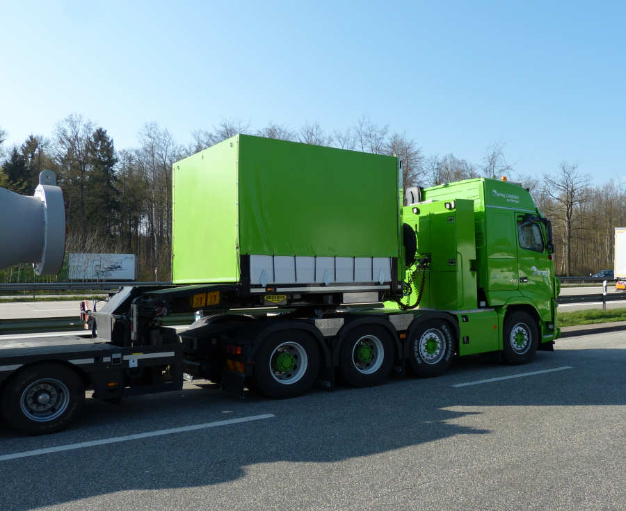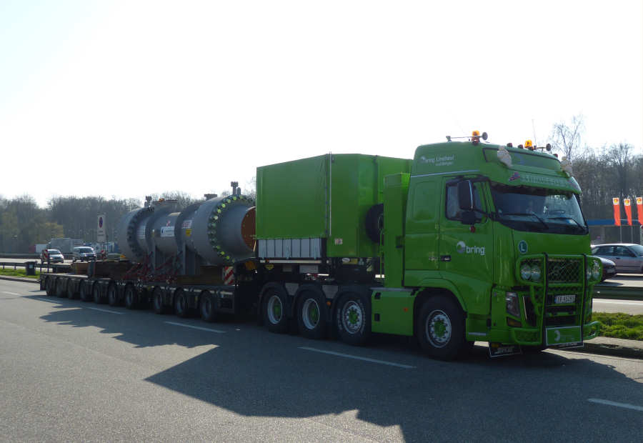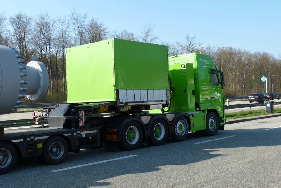 Volvo FH 16 750 8x4 mit Broshuis 3+7 SL Tieflader und Druckbehälter Ladung