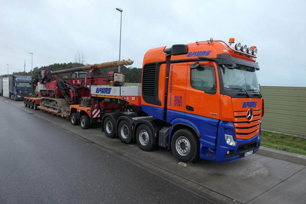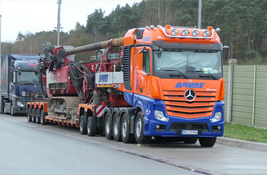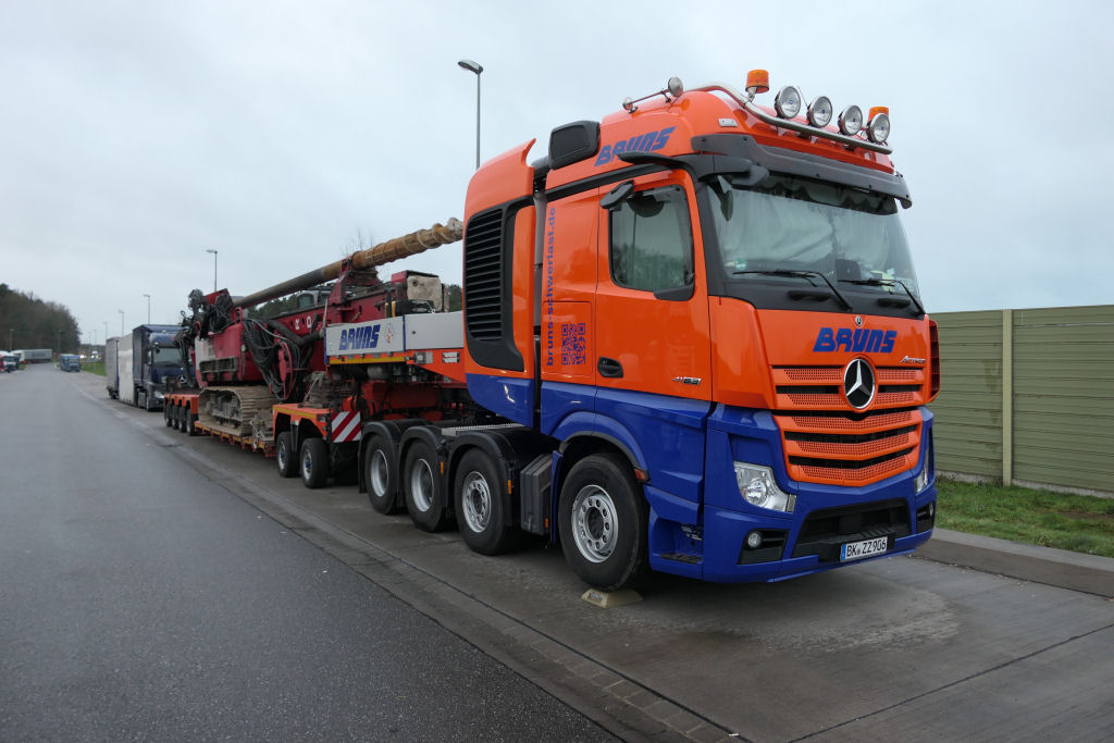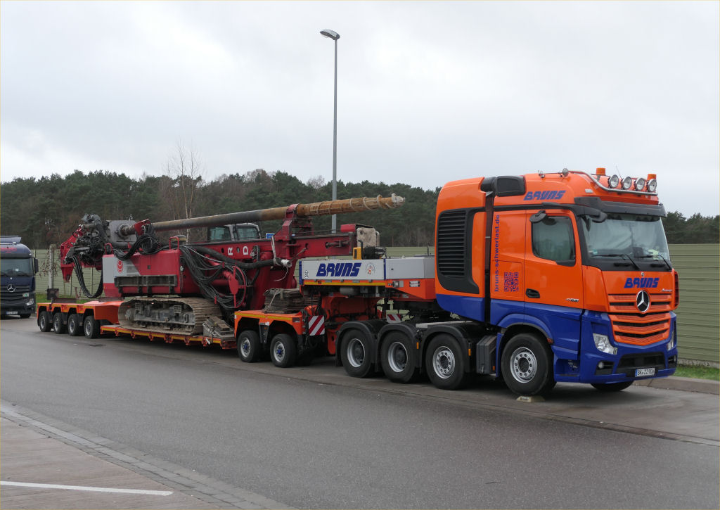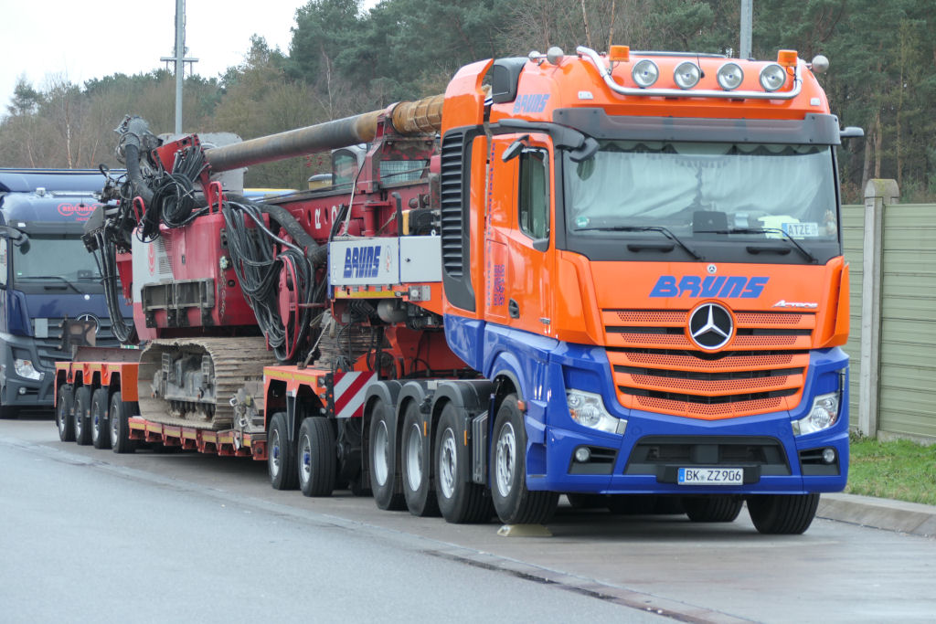 MB 4163 Actros SLT Titan mit Goldhofer 2-4 Tieflader und Enteco E 500 Bohrgerät