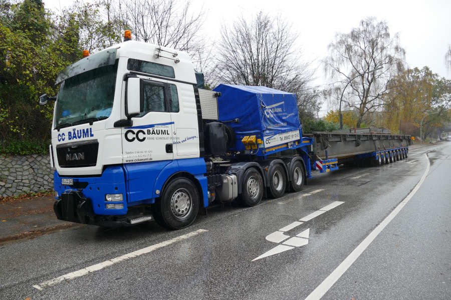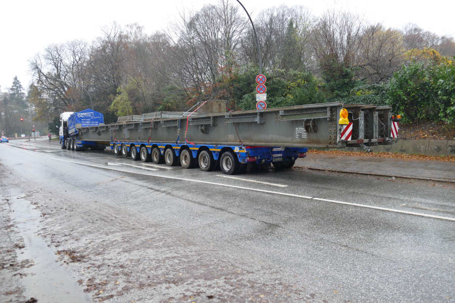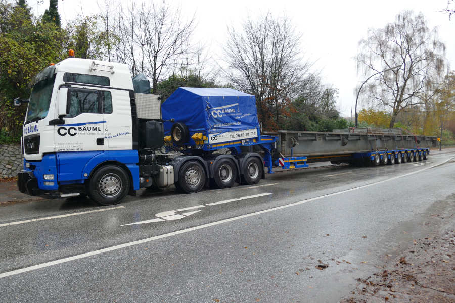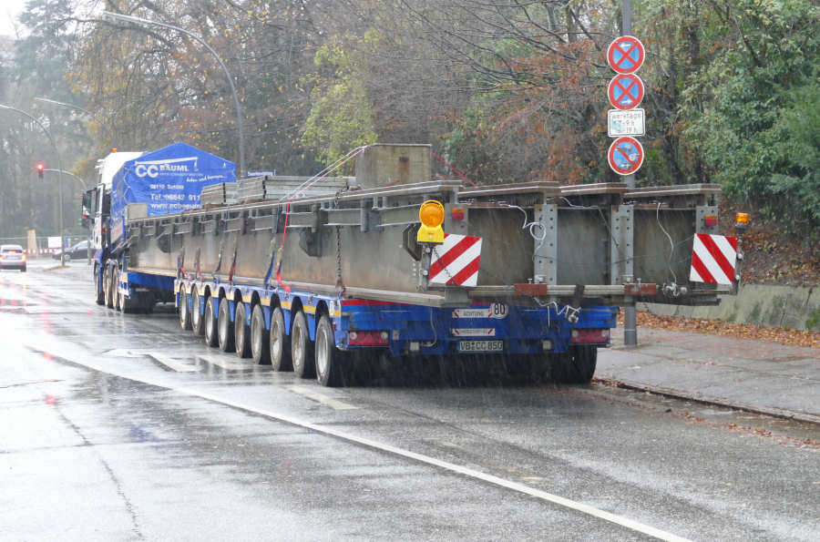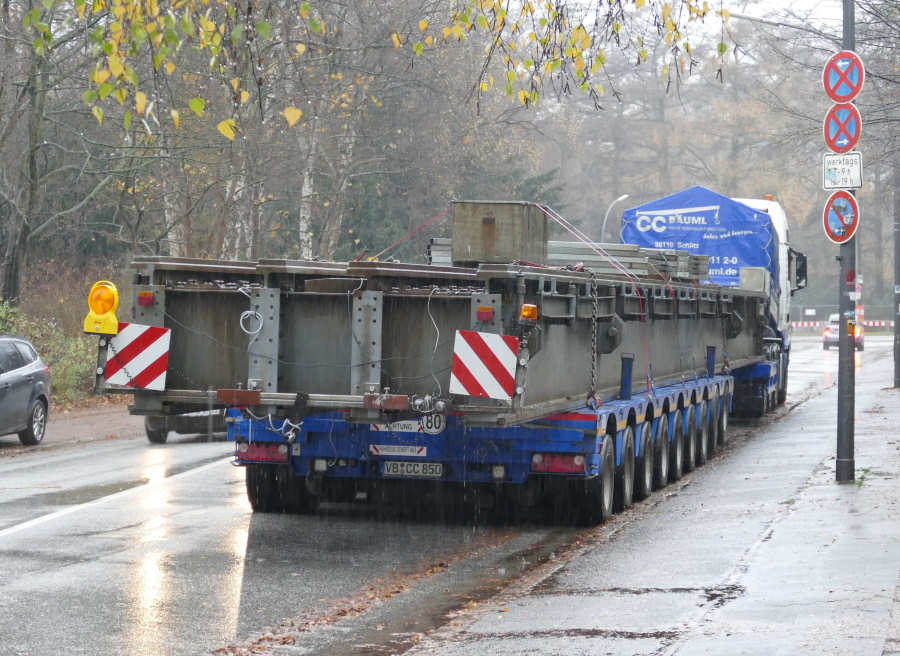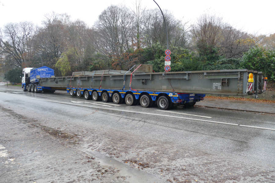MAN 41.540 TGX mit Faymonville 9 achs Semitieflader, Transport einer Bahnhilfsbrücke