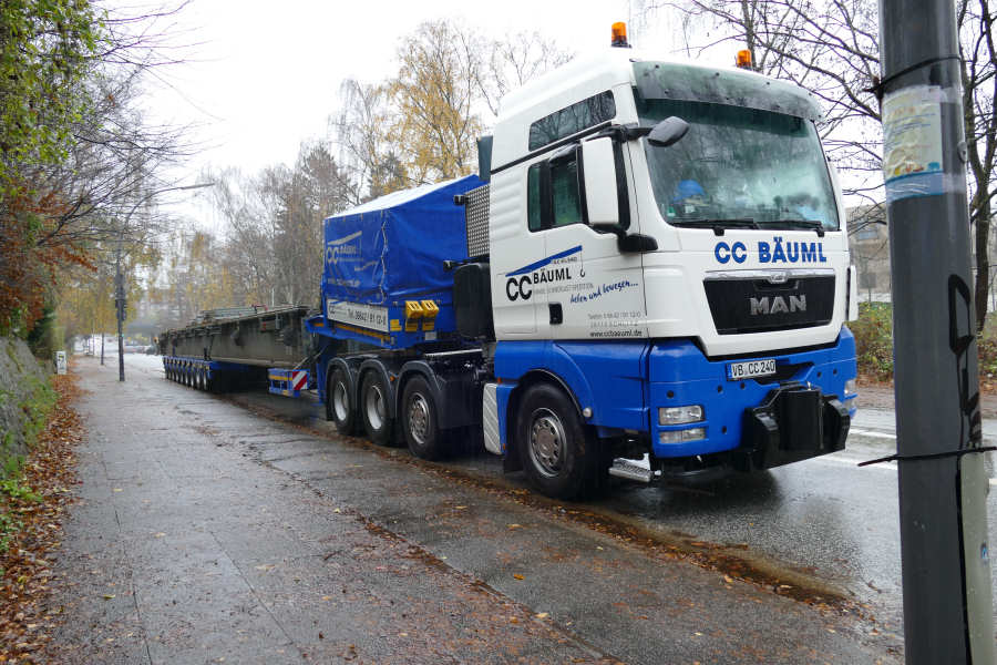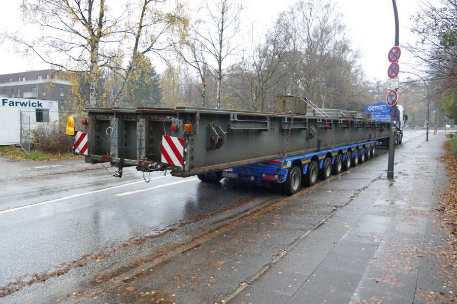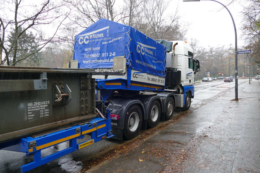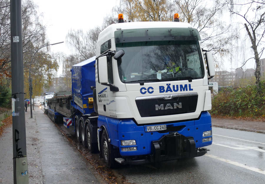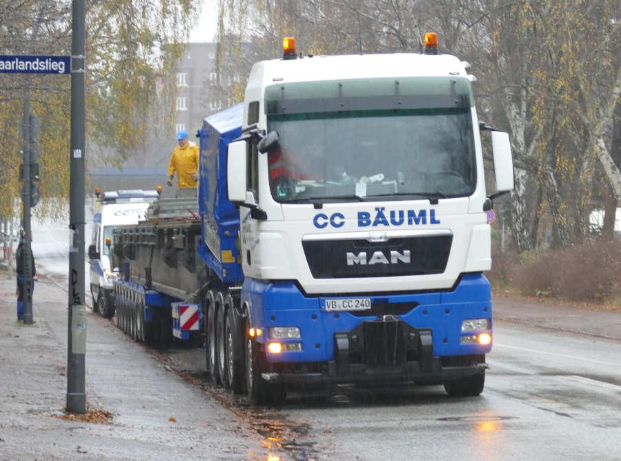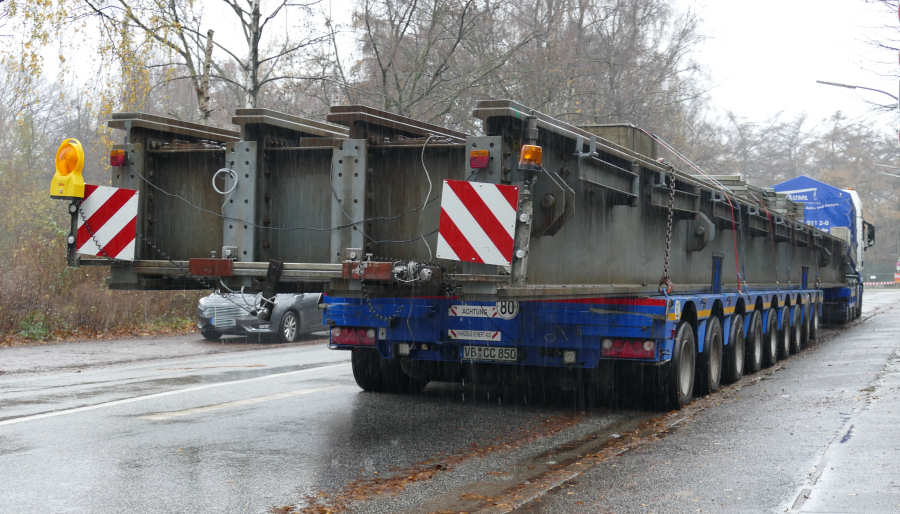 MAN 41.540 TGX mit Faymonville 9 achs Semitieflader, Transport einer Bahnhilfsbrücke