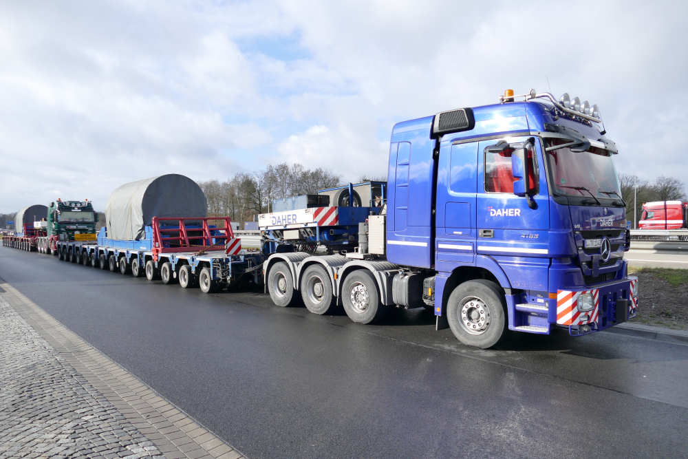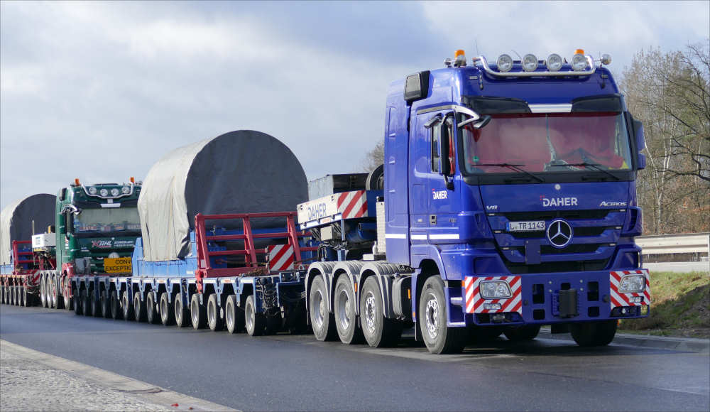 MB 4165 Actros MP 3 Titan mit 14 achs Scheuerle Intercombi Sattelroller und 125 t Ladung