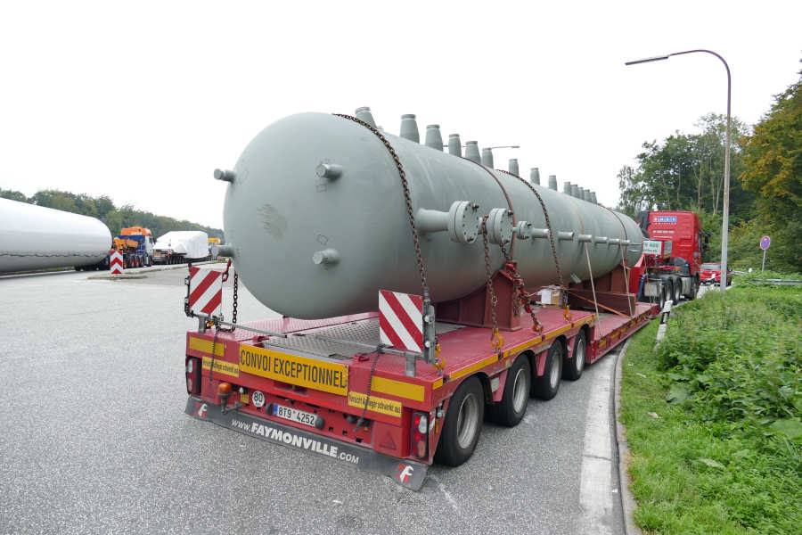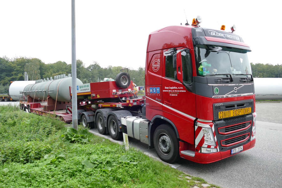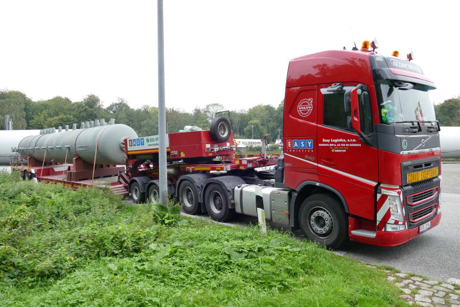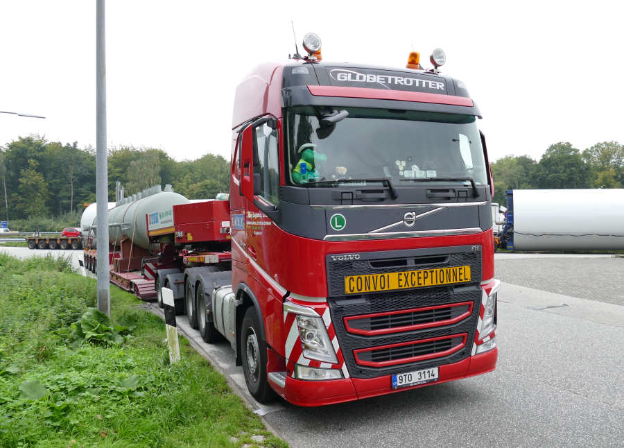 Volvo FH 16 540 Euro 6 mit Faymonville 2/4 Jeepdollytieflader und Druckbehälterladung