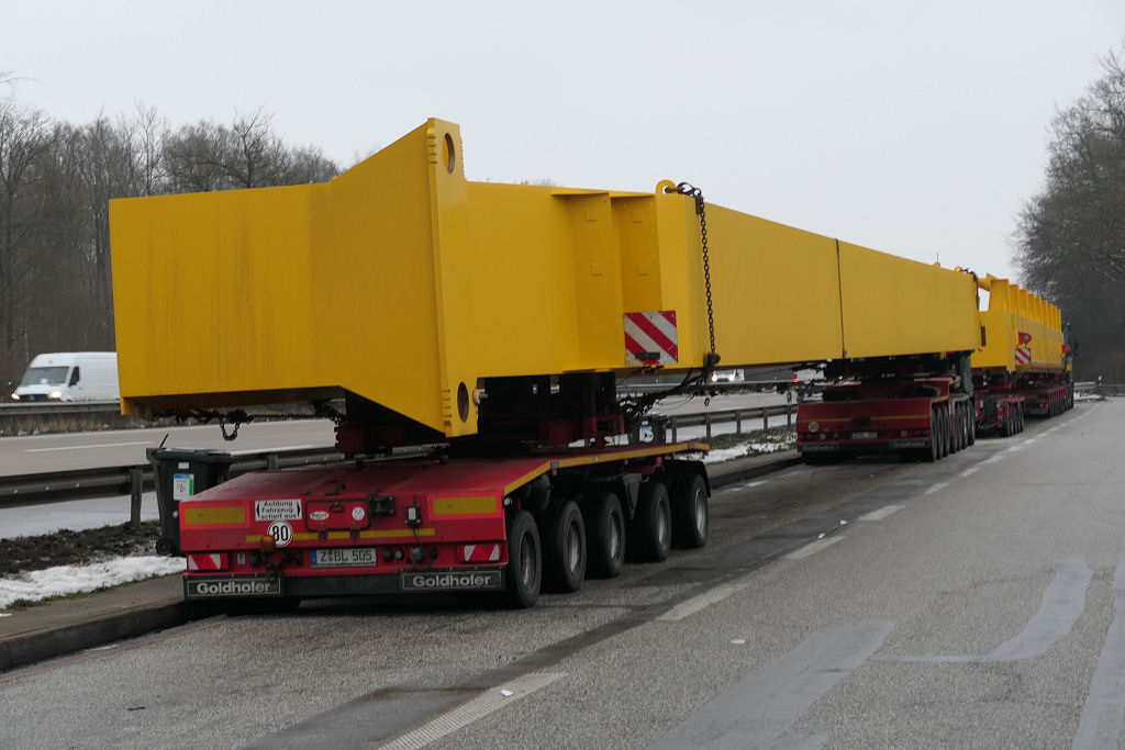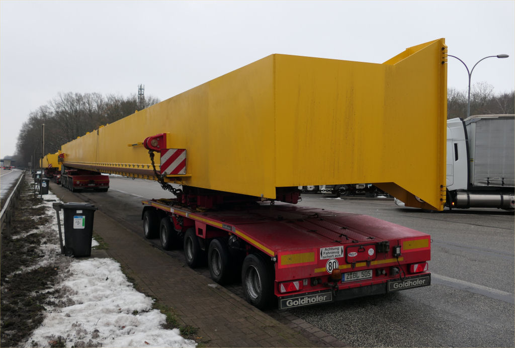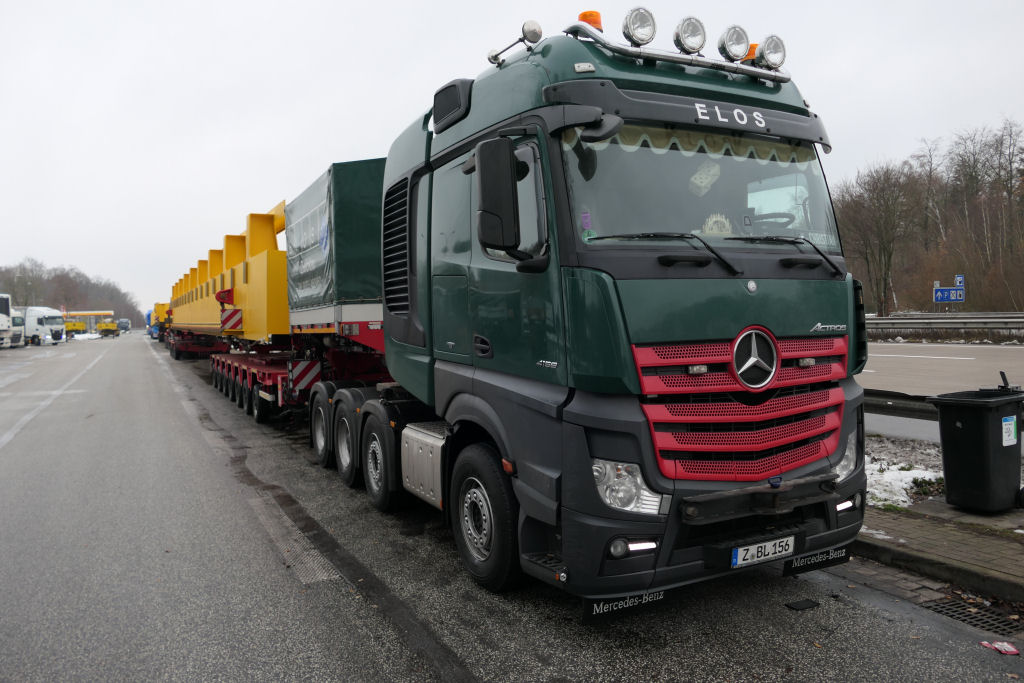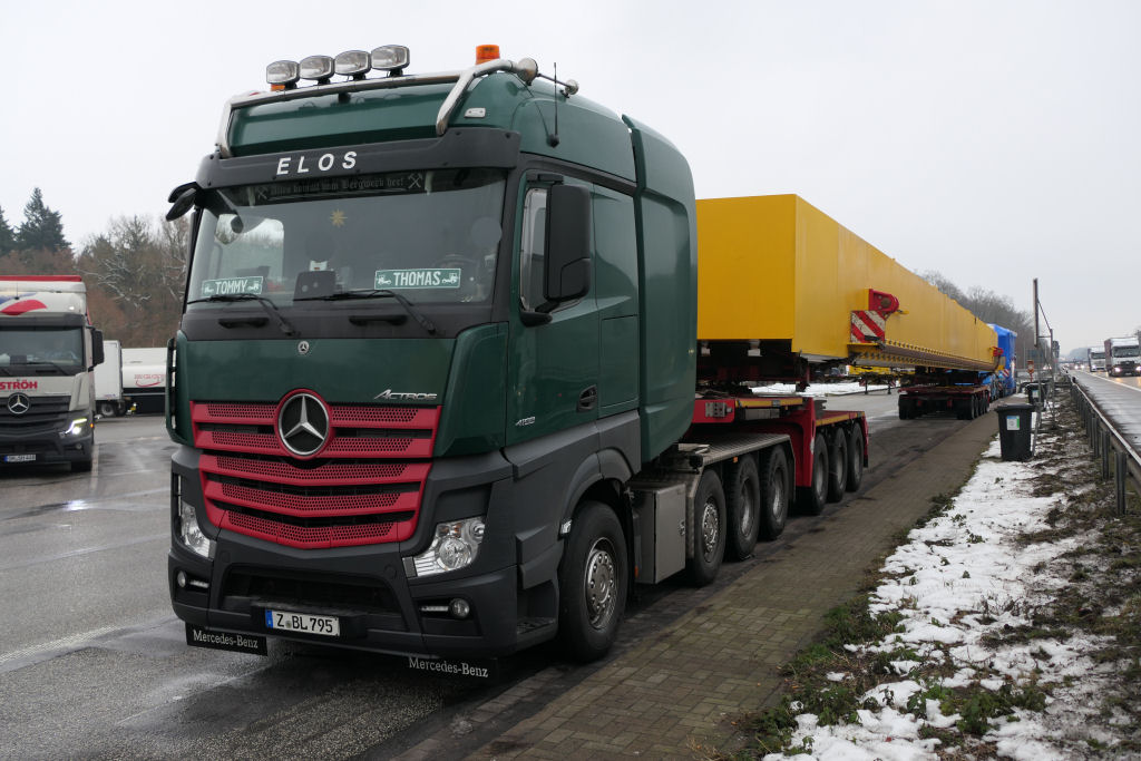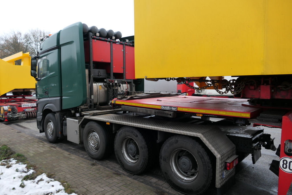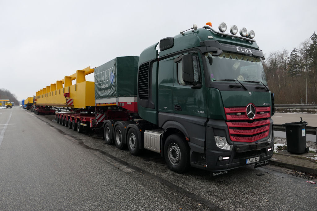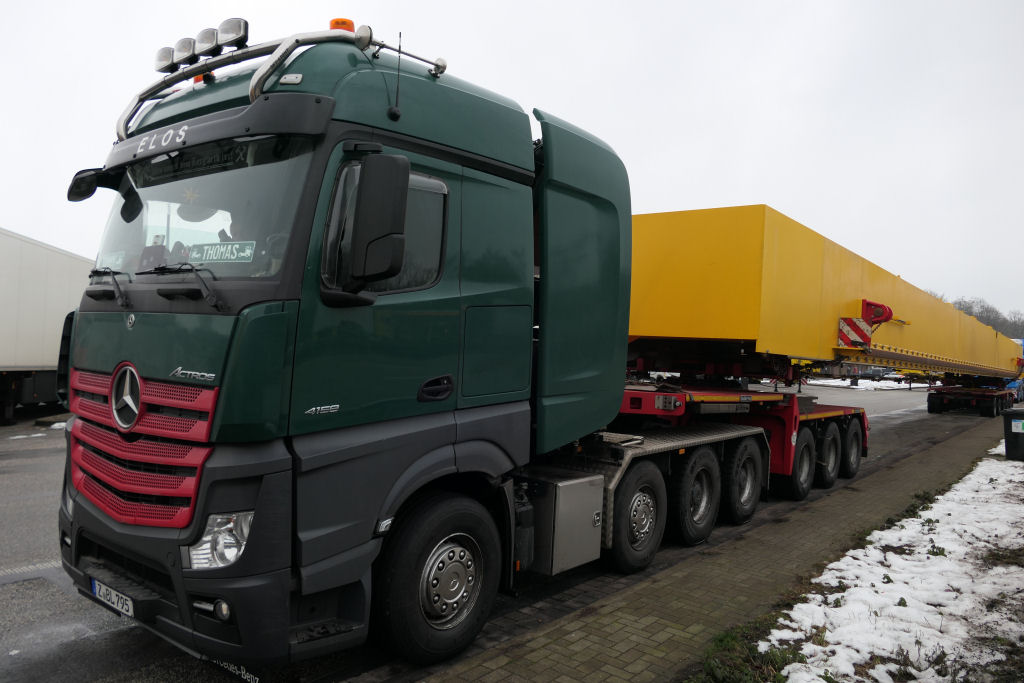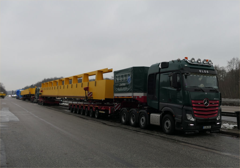 2x MB 4163 Actros Titan mit Nachläufer Kombination und Kranbahnträger