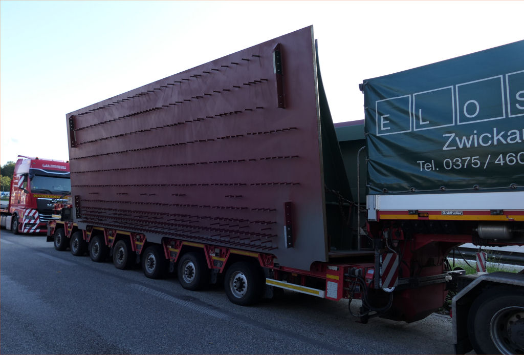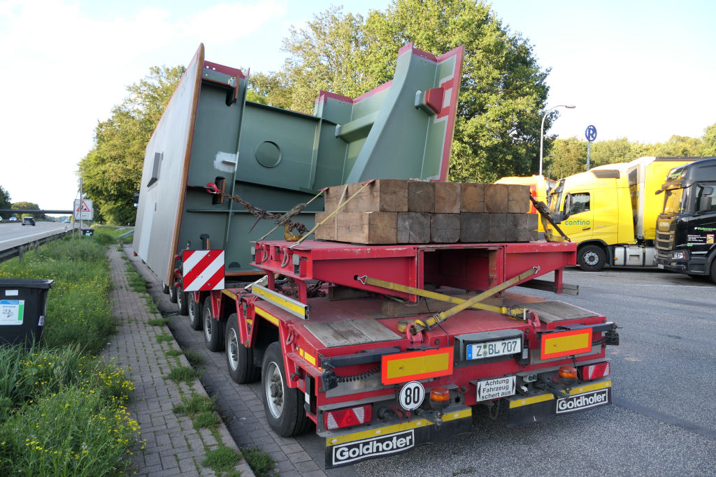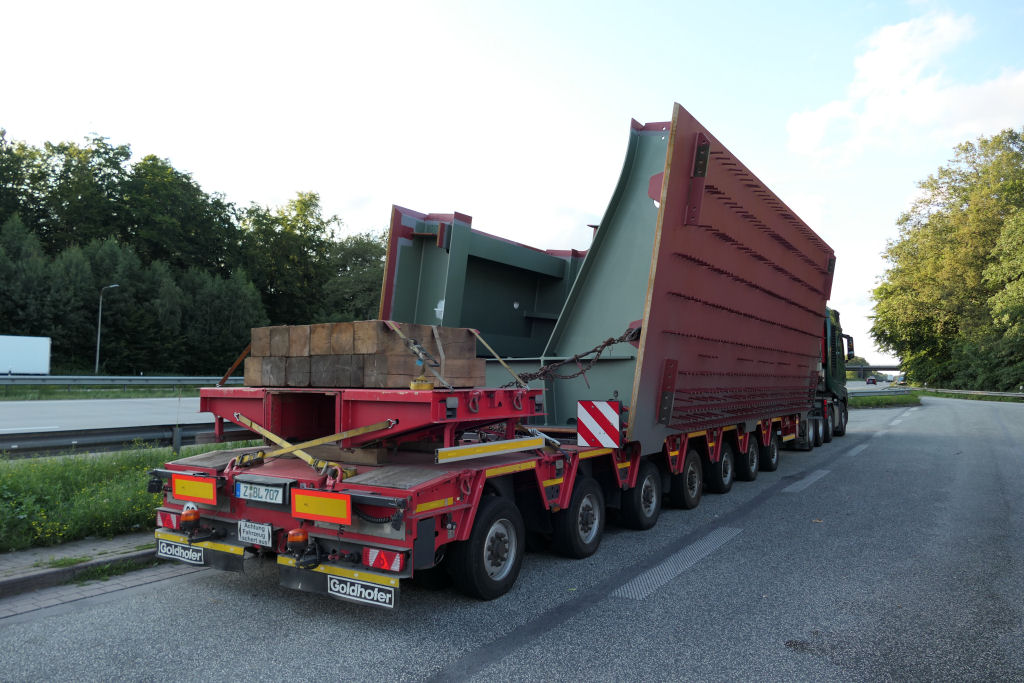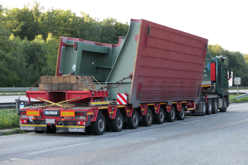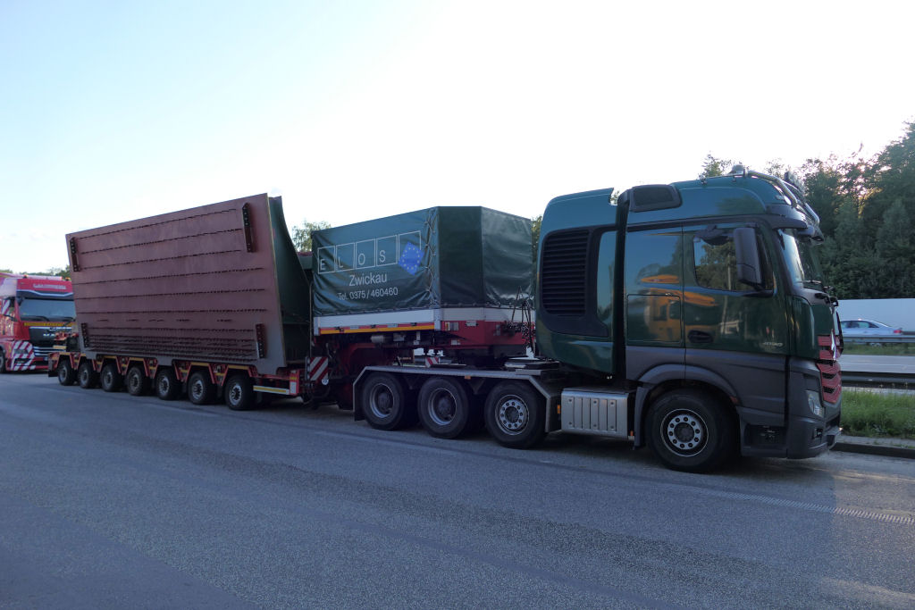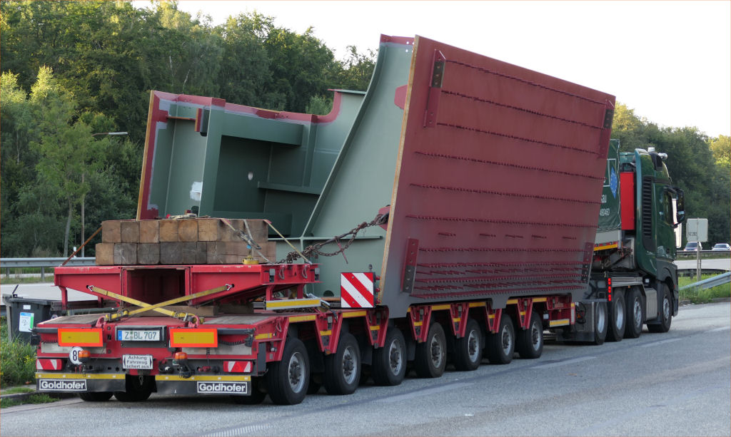 2x MB 4158 Actros Titan mit Brückenteilen für die Rader Hochbrücke