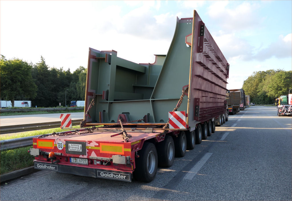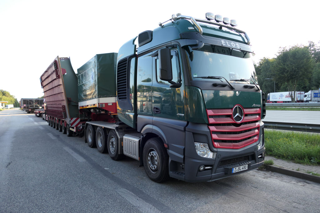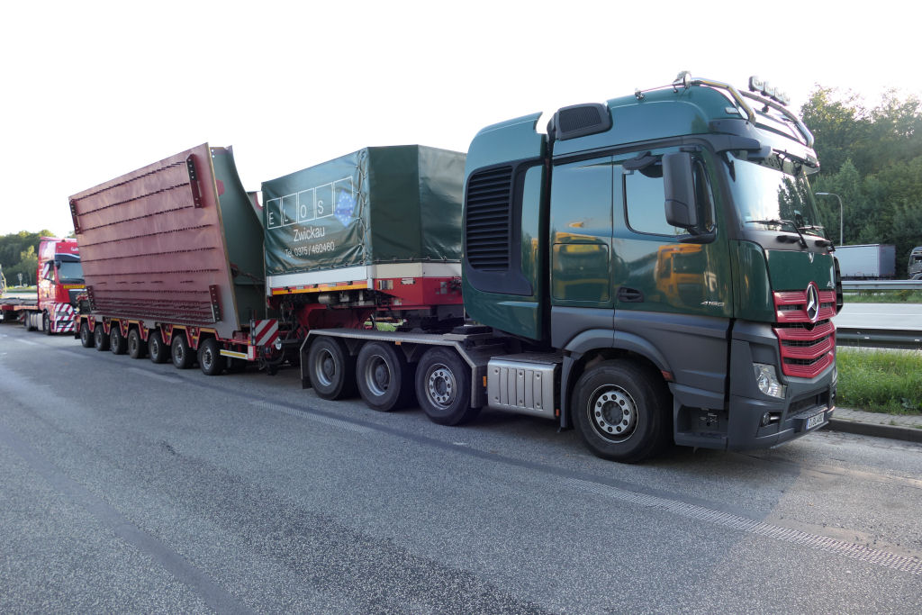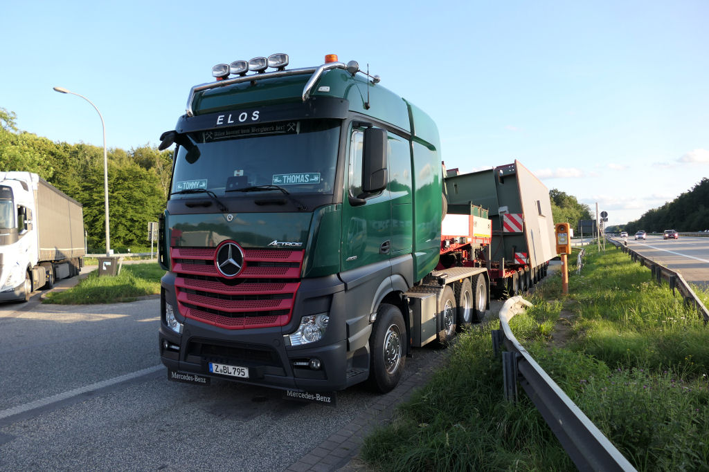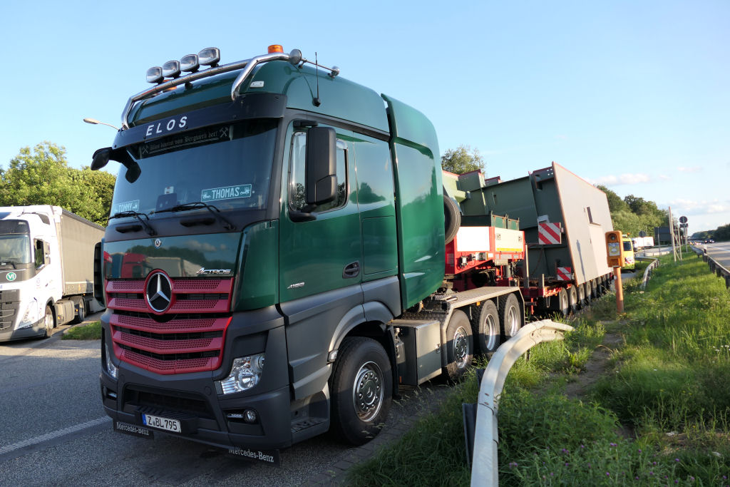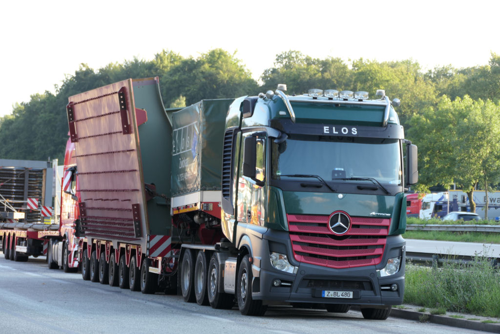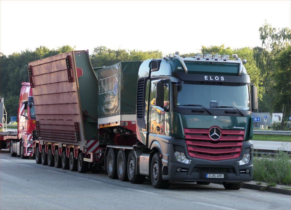 2x MB 4158 Actros Titan mit Brückenteilen für die Rader Hochbrücke