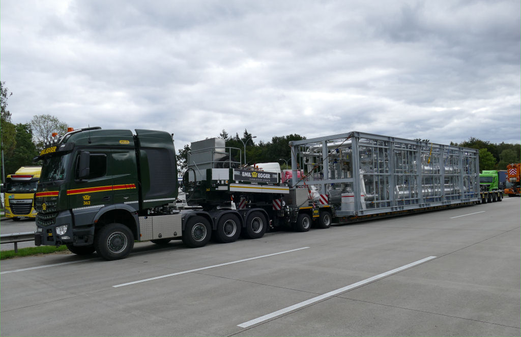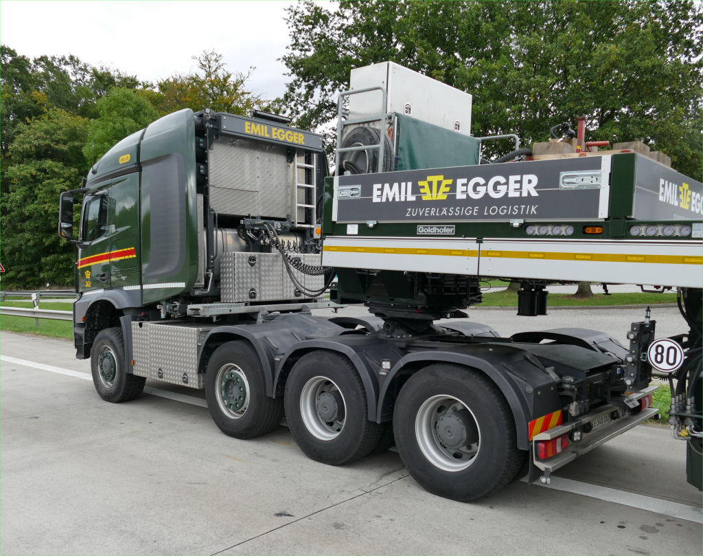 MB 4163 Arocs SLT 8x6 mit Goldhofer THP UT 2/5 Kesselbrücke mit Pumpenmodul Transport