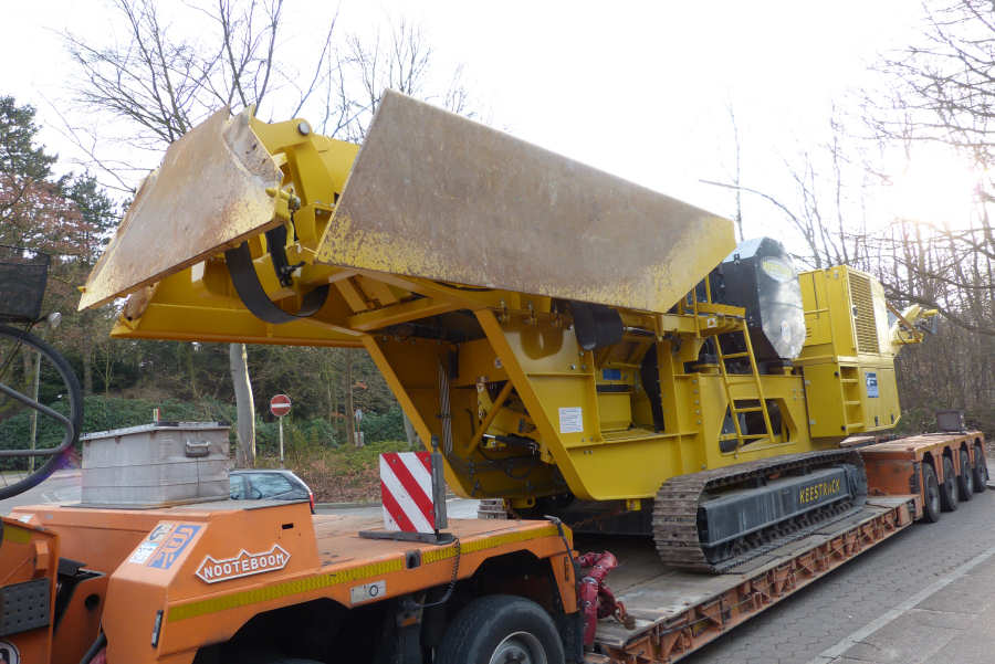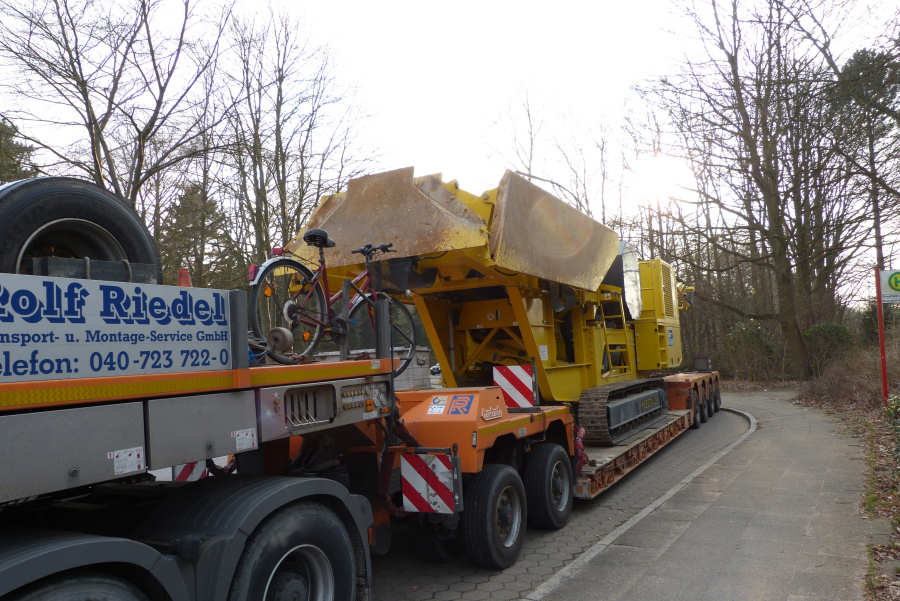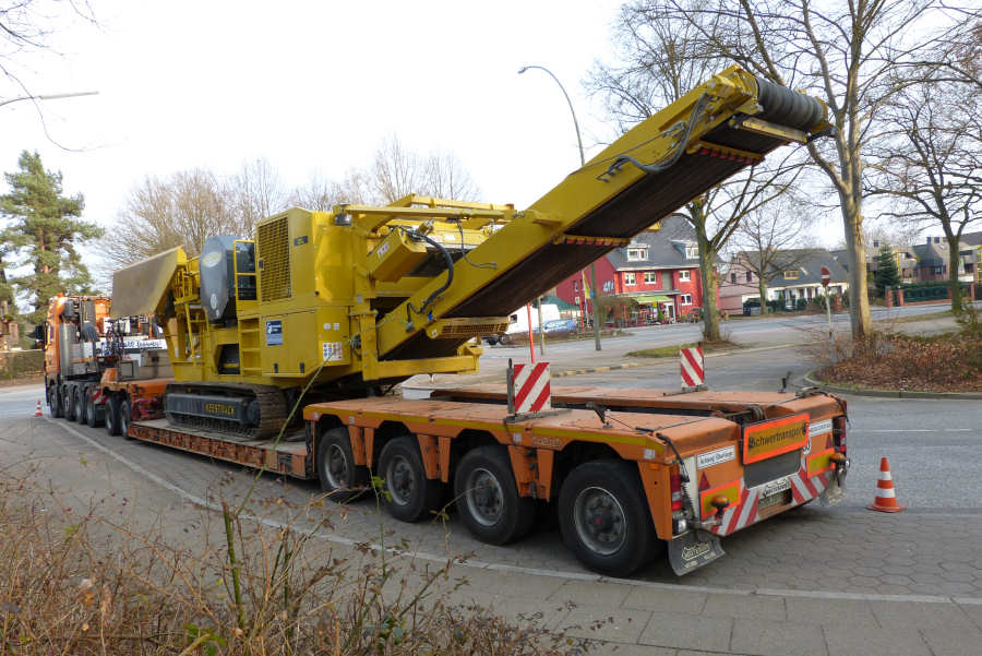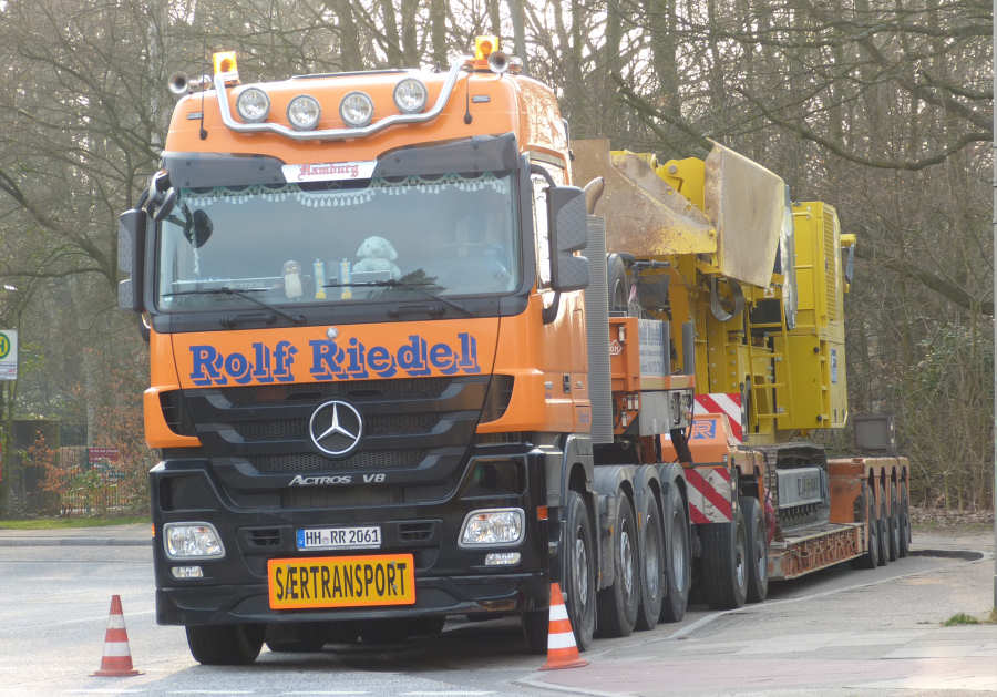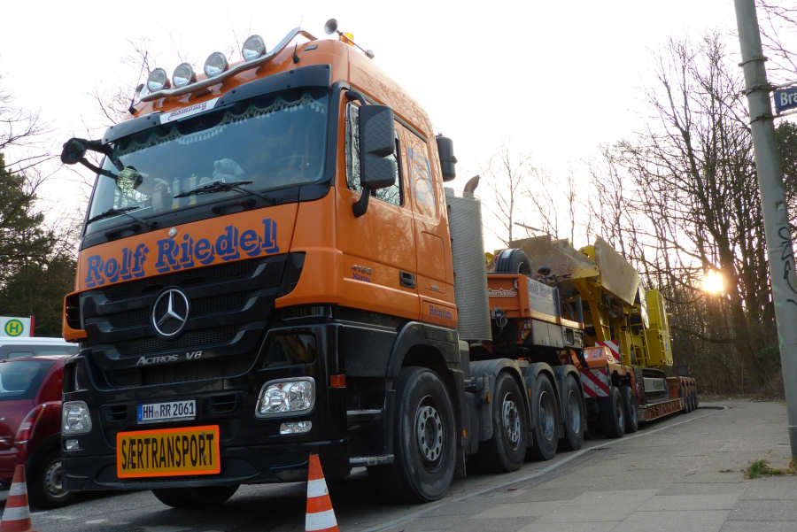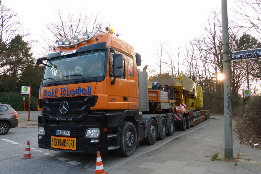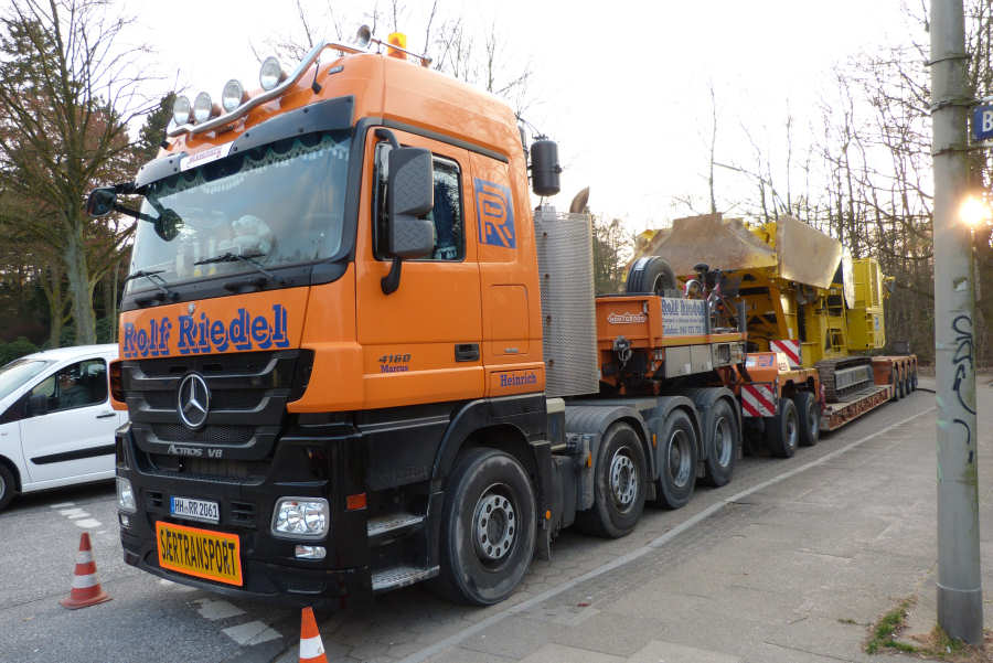 Zum Einsatz kam die MB 4160 MP 3 Titan mit Nooteboom 2/4 Tieflader.
