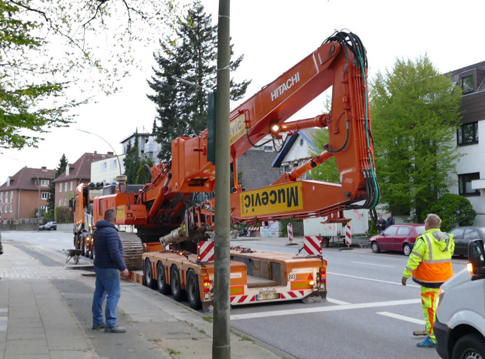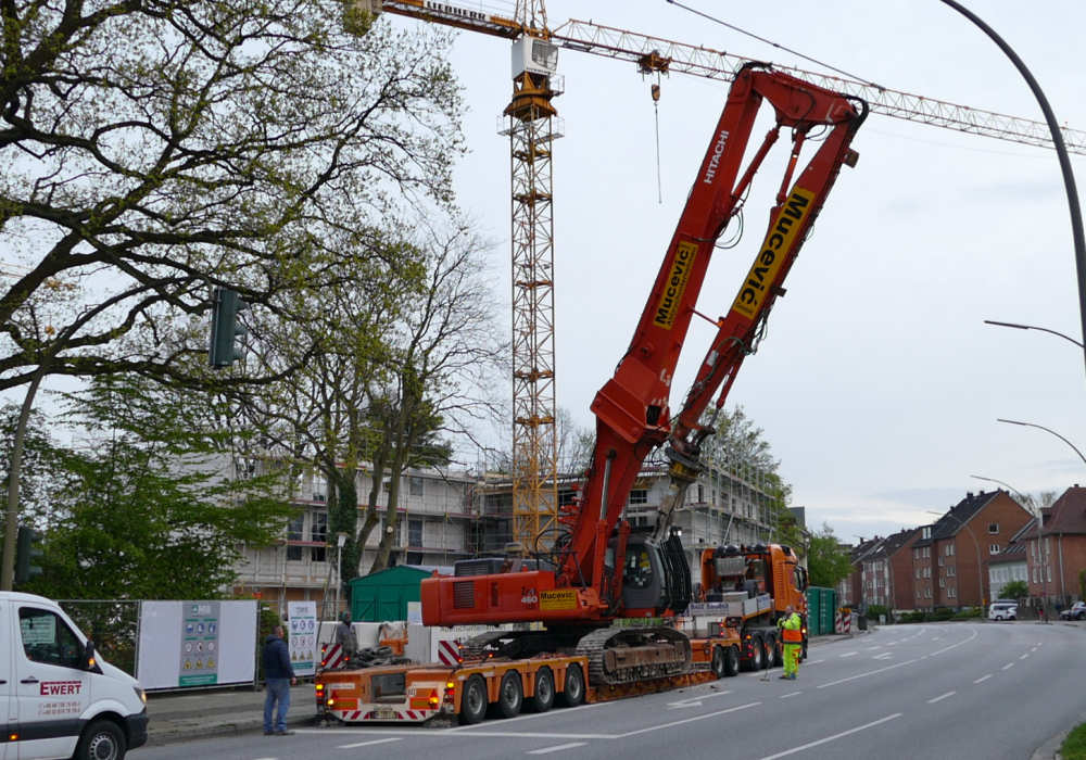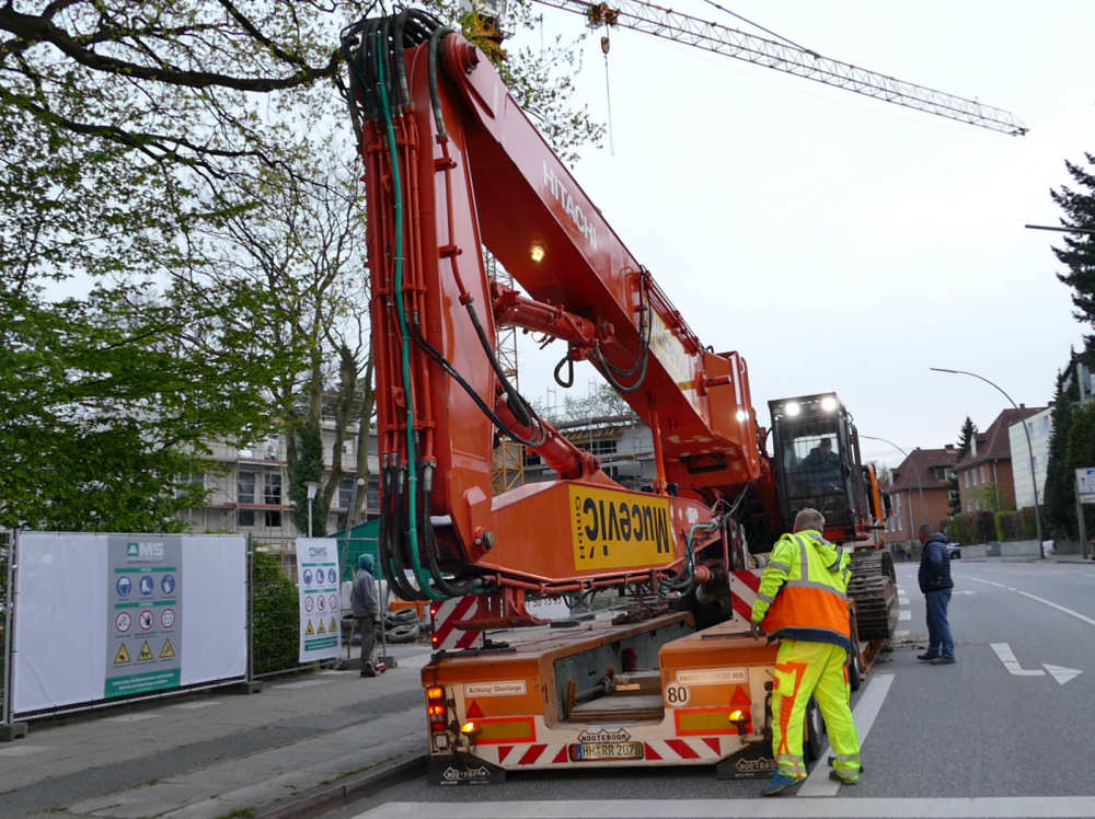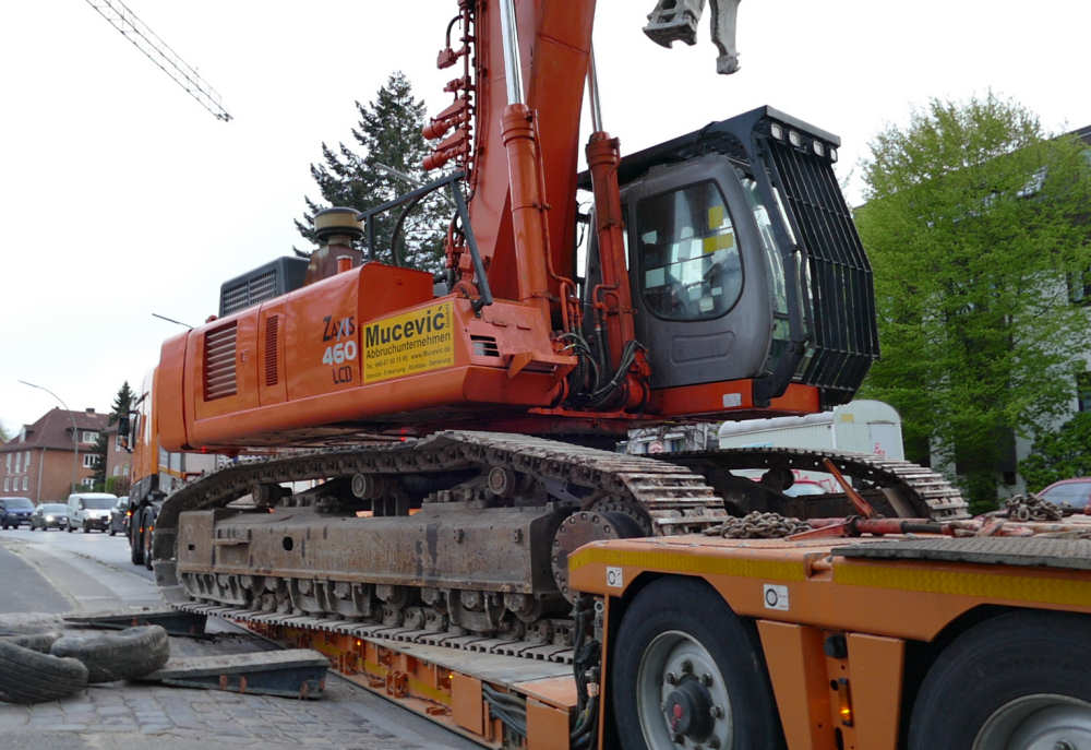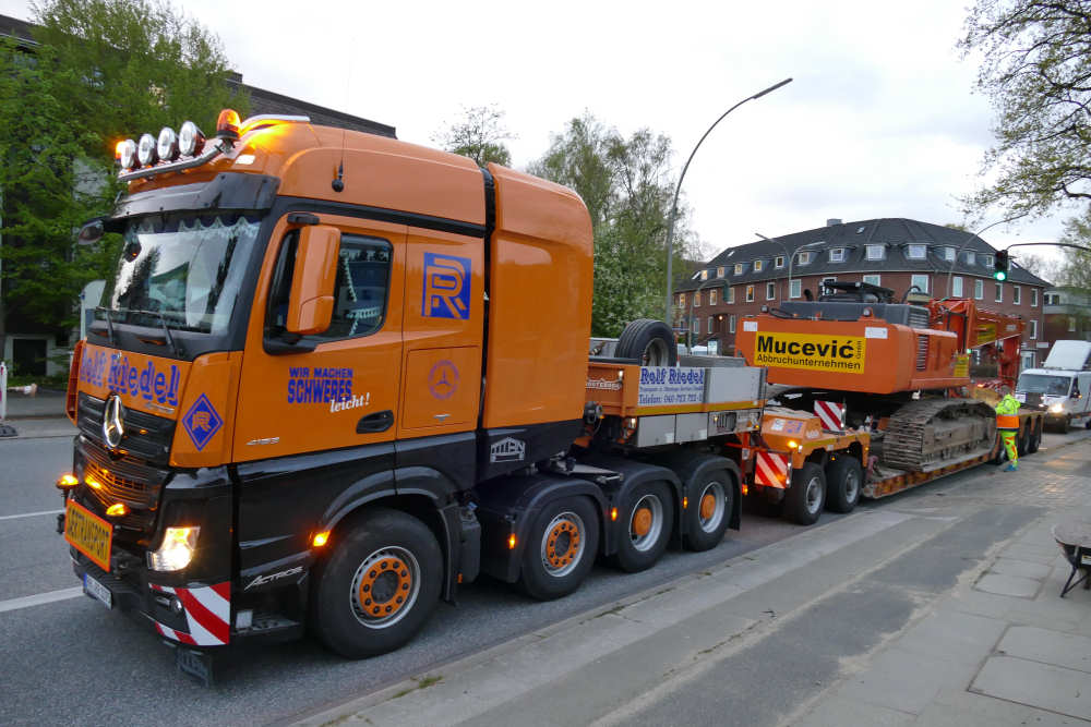 MB 4163 SLT Titan mit Nooteboom 2/4 Euro Tieflader Abholung Hitachi Zaxis 460 UHD von Mucevic Abbrüche