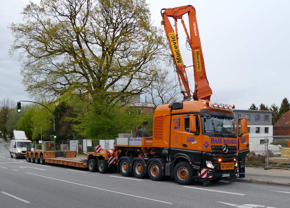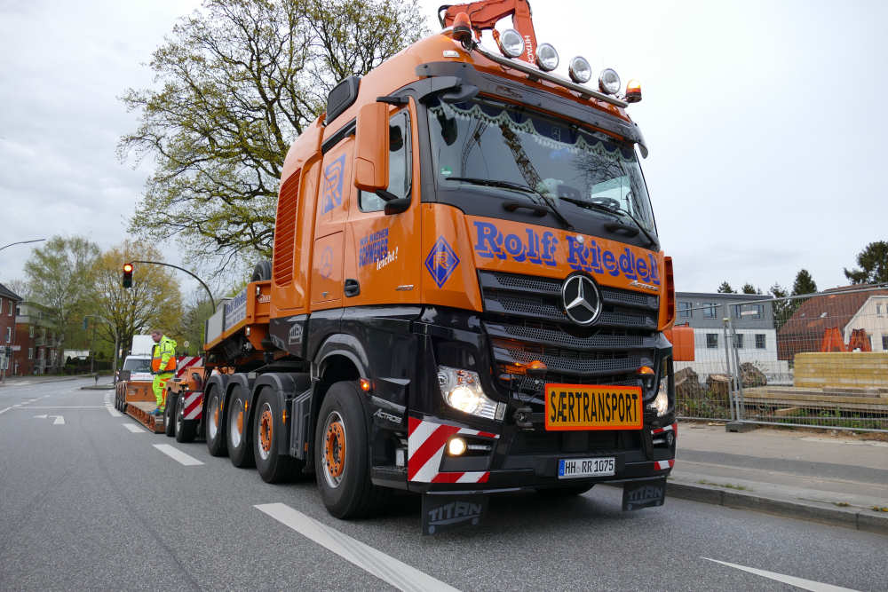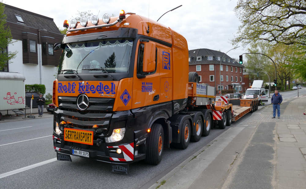Hierfür setzte Rolf Riedel eine der beiden MB 4163 SLT Titan mit Nooteboom 2/4 Tieflader ein.
