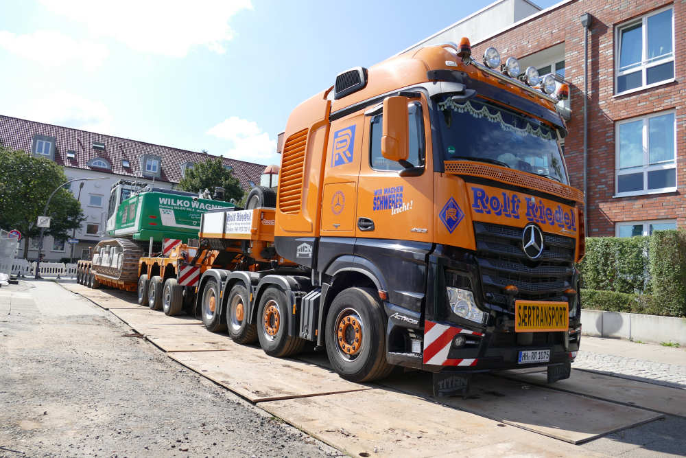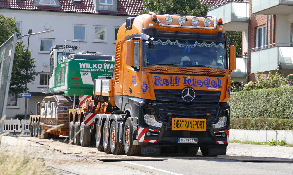 MB 4163 SLT Titan mit Nooteboom 3/5 Euro PX Transport Liebherr R 960 Demolition Wilko Wagner