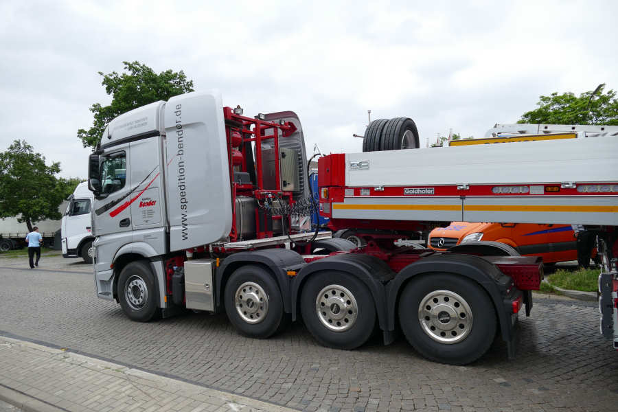 Die Transportkombination bestand aus MB 4163 SLT 8x4 und Goldhofer STZ-P10- 105/80 (3+7) Tieflader