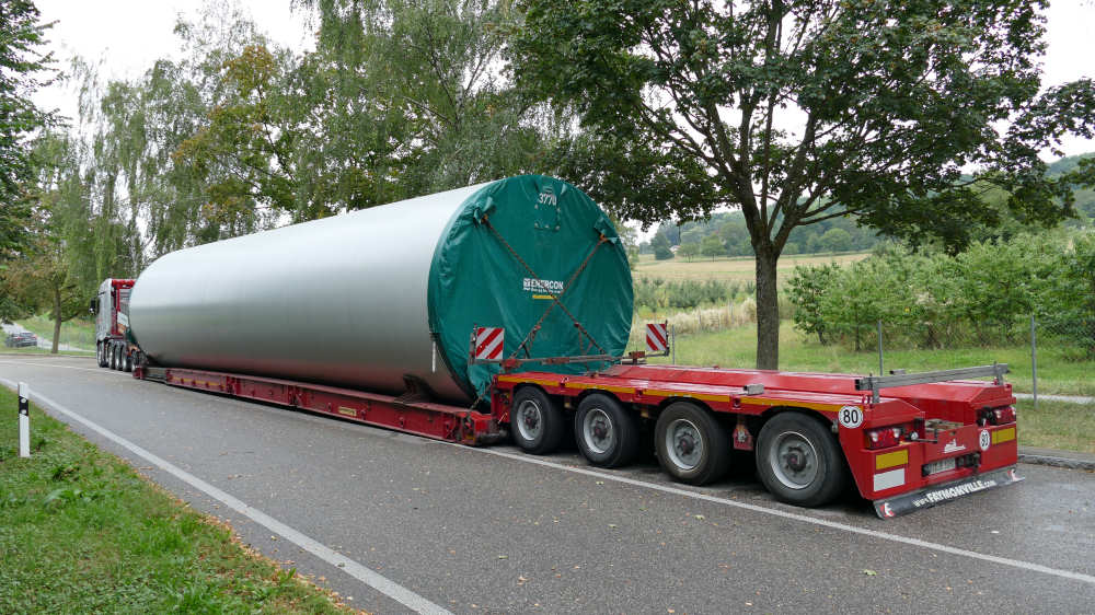 MB 4163 SLT mit Faymonville 2/4 Tieflader und Enercon WEA Turmsektion