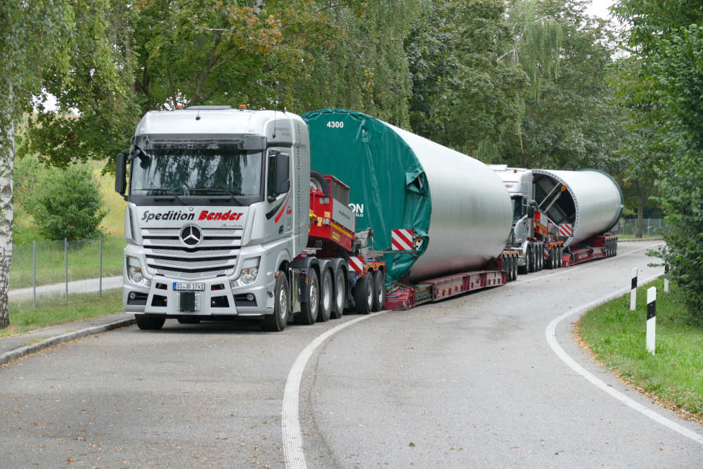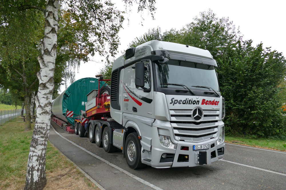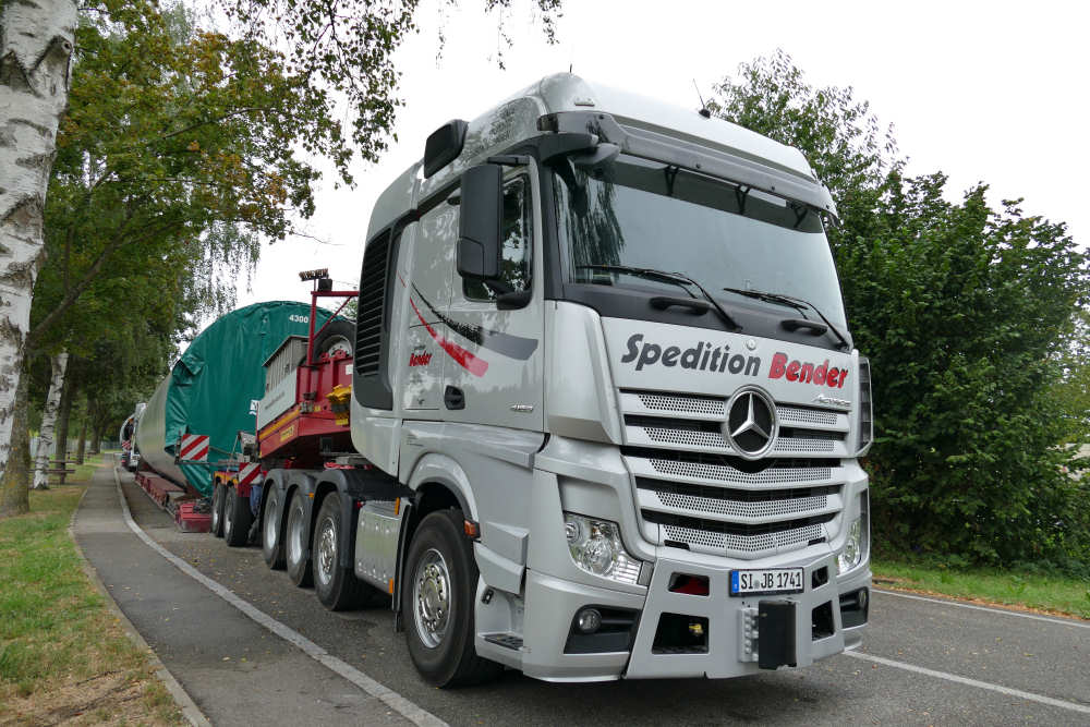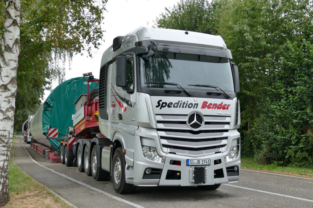 MB 4163 SLT mit Faymonville 2/4 Tieflader und Enercon WEA Turmsektion